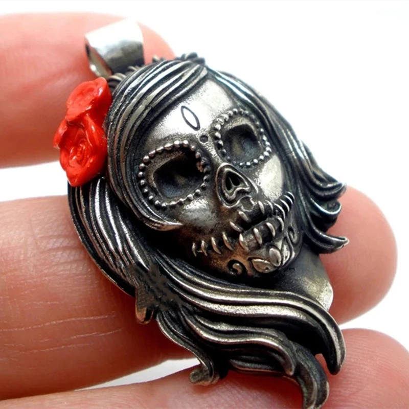 EYHIMD Unique Flowers Calavera Sugar Skull Pendant Neckla…
