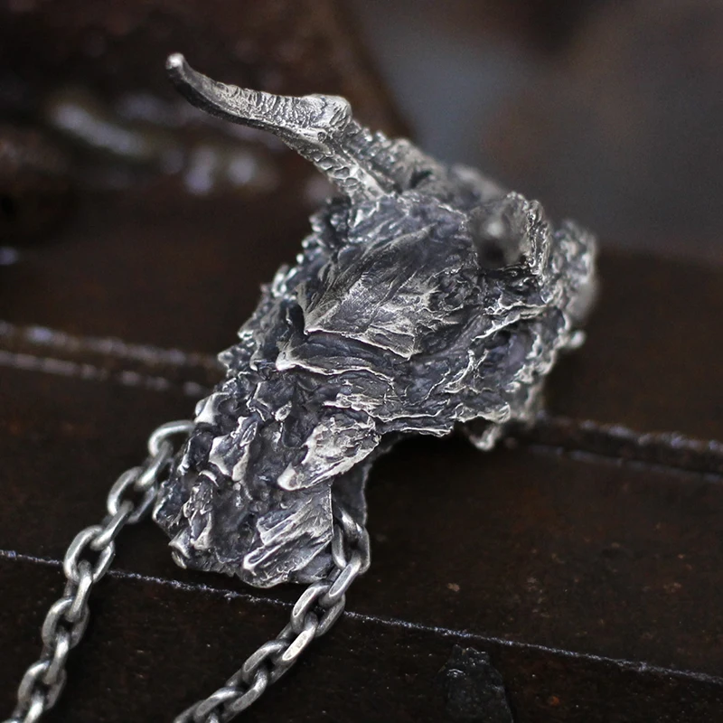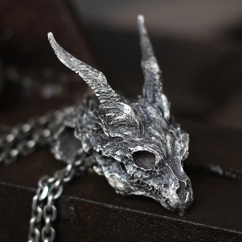 EYHIMD Vintage Detail Evil Dragon Skull 316L Stainless Steel Pendant Men's Punk Biker Jewelry