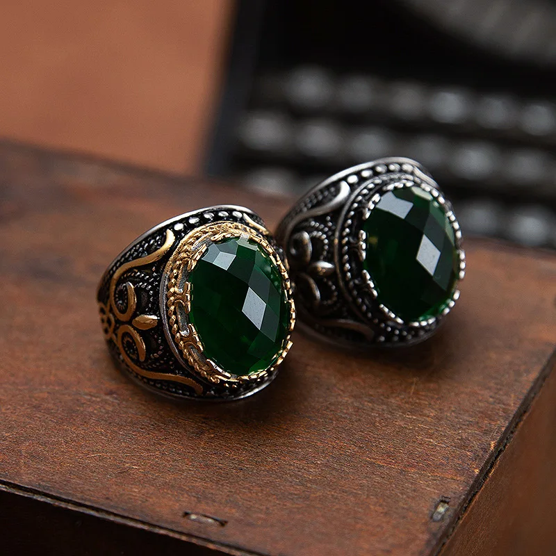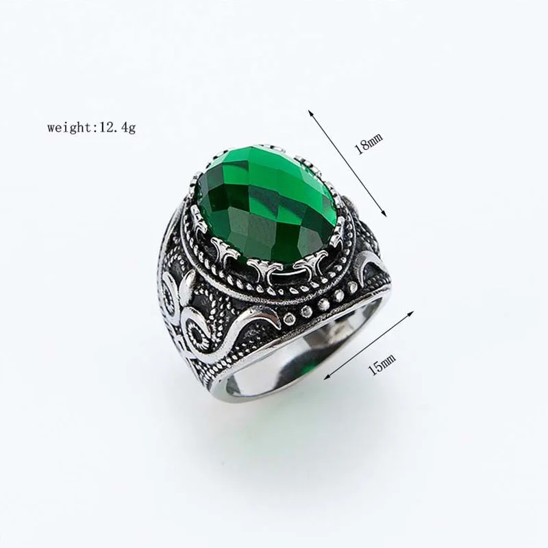 Name:Fashion Men Women Big Green CZ Stone Ring Vintage Palace Style Pattern Stainless Steel Ring Punk Gothic Jewelry Accessories