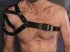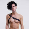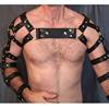 Men’s leather chest strap harness, metal studs and rings, adjustable buckles, one size fits for most