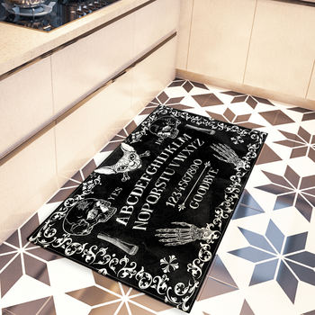 Triple Moon and Pentagram Altar or Tarot, Witchy Floor Mat, Witchy Rug in Black, Witch essential altar Rug, Gothic Decor