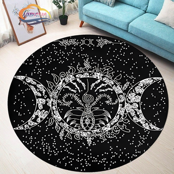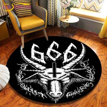 Black Rug Living Room Decorative Pattern Round Rug Cat Goat Throne Bedroom Atheism Floor Mat Home