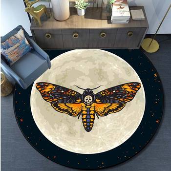 Death Moth Area Rug Gothic Skull Round Floor Mat Butterfly Moon Living Room Carpet Bathroom Kitchen Rug Doormat