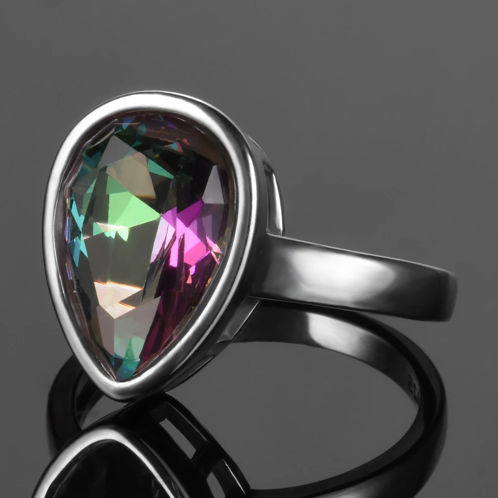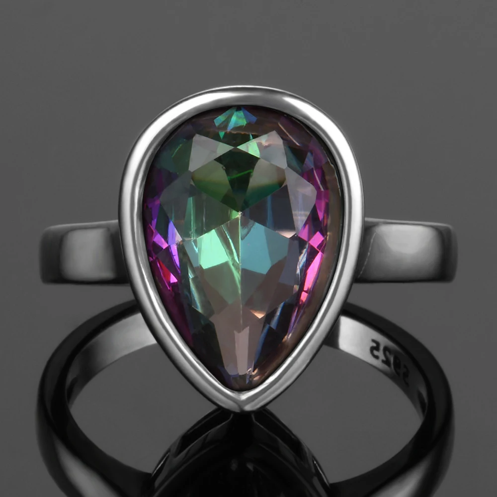 Genuine 925 Sterling Silver Jewelry Water Drop Rainbow Fire Mystic Topaz Rings For Women Fine Jewelry Anniversary Gift Wholesale