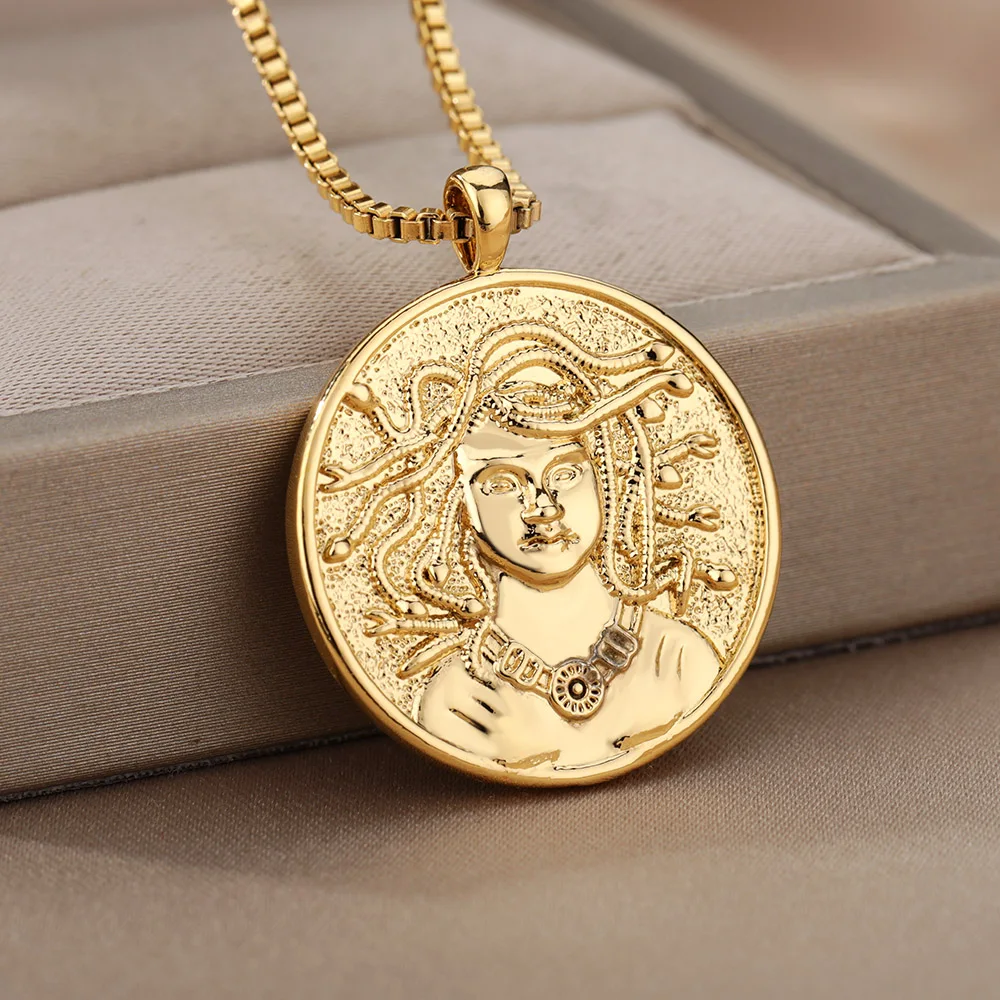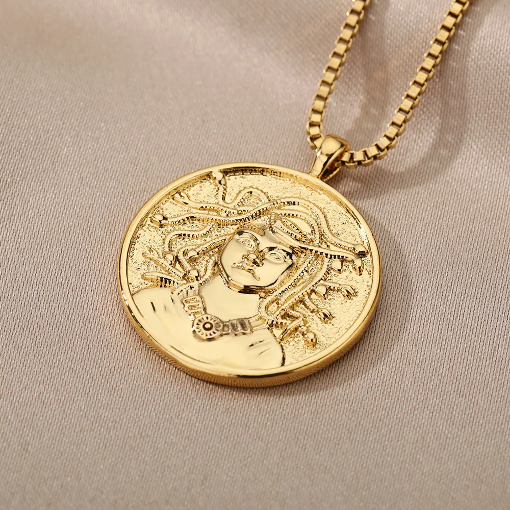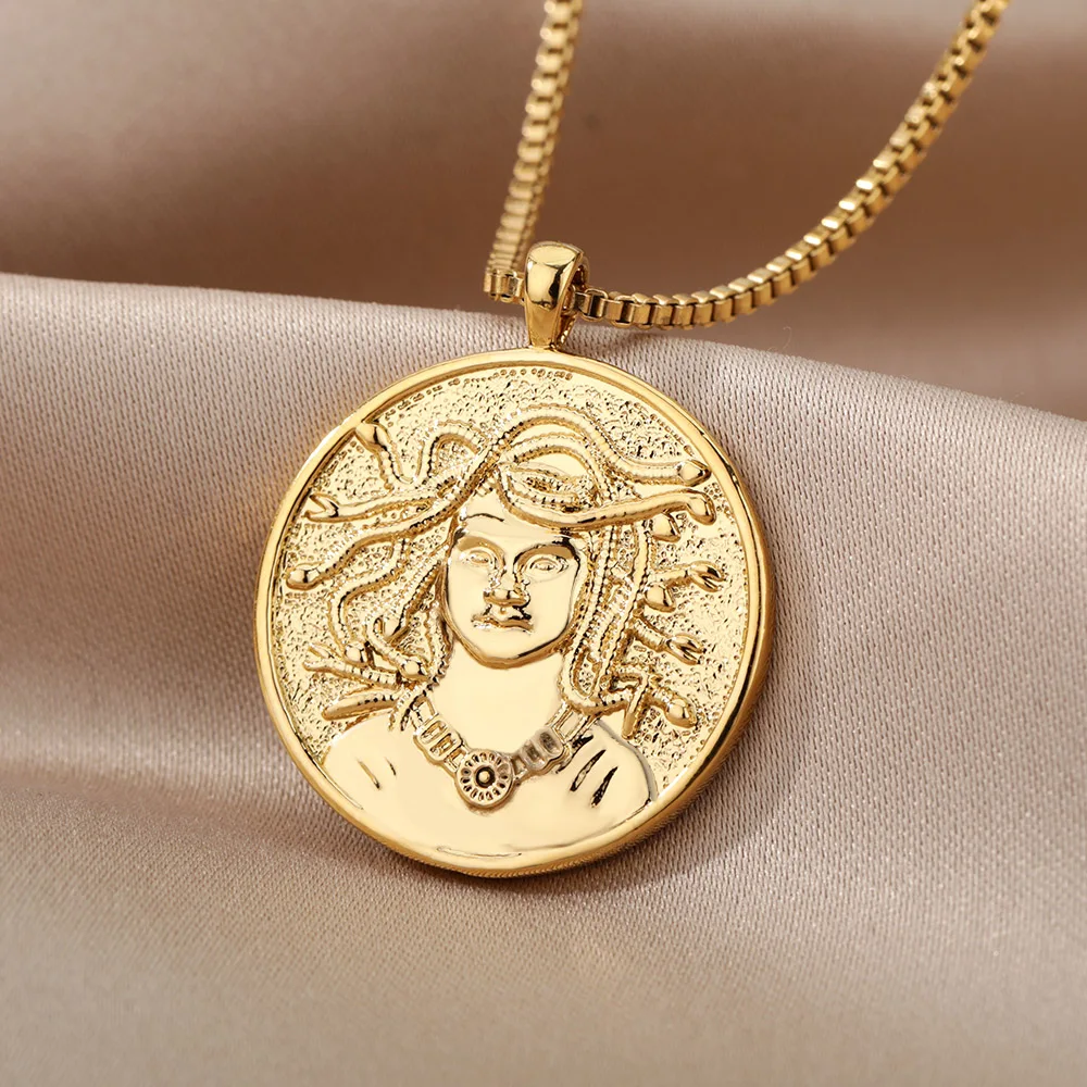 Goddess Hecate Necklace Stainless Steel Revered Snake Medusa Olympians Gods Pendant Necklace For Women Men Vintage Jewelry 2022
