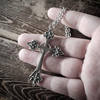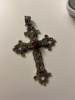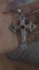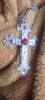This beautiful silver tone cross is 7.7cm and hangs from a silver chain.