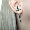 Earrings are worn as an ear jacket, first, you put the stud, and the back part screws from the back of the ear.
