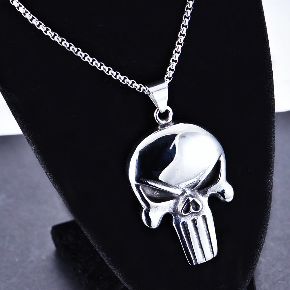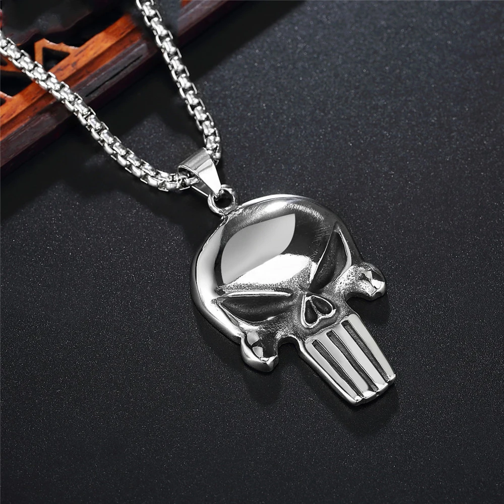 Punisher Skull Pendant Necklace Men's Chain Punk Hip…