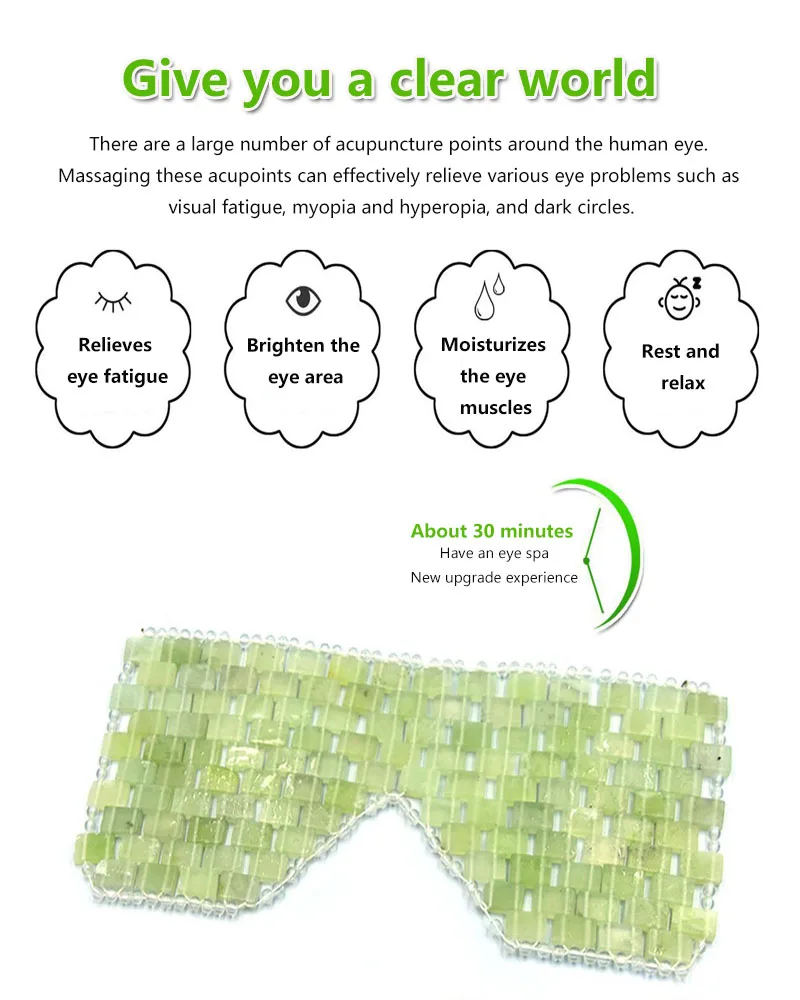 the coolness and weight of the jade stones help reduce puffy eyes in the morning.