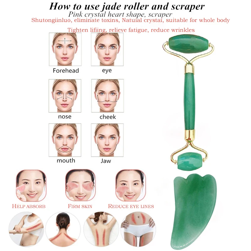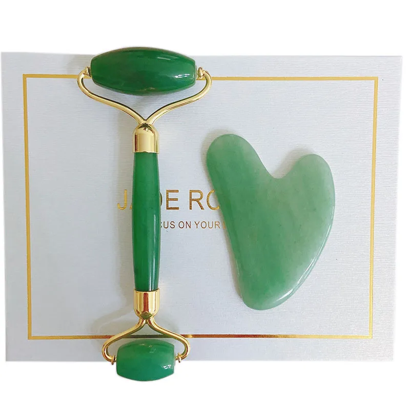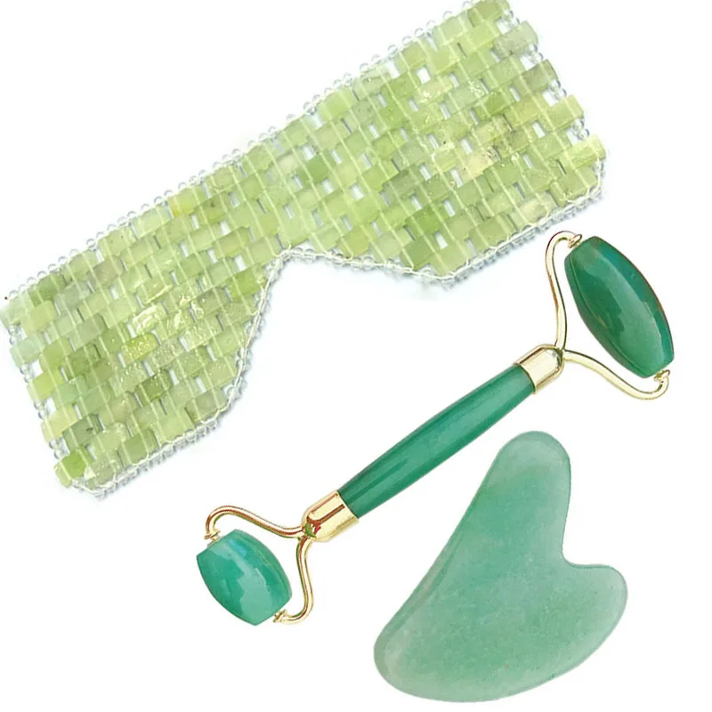 Green Aventurine Jade Eye Mask Face Massager Jade Roller Guasha Set Eye Massager Therapy Jade Stone Facial Massager Scraper