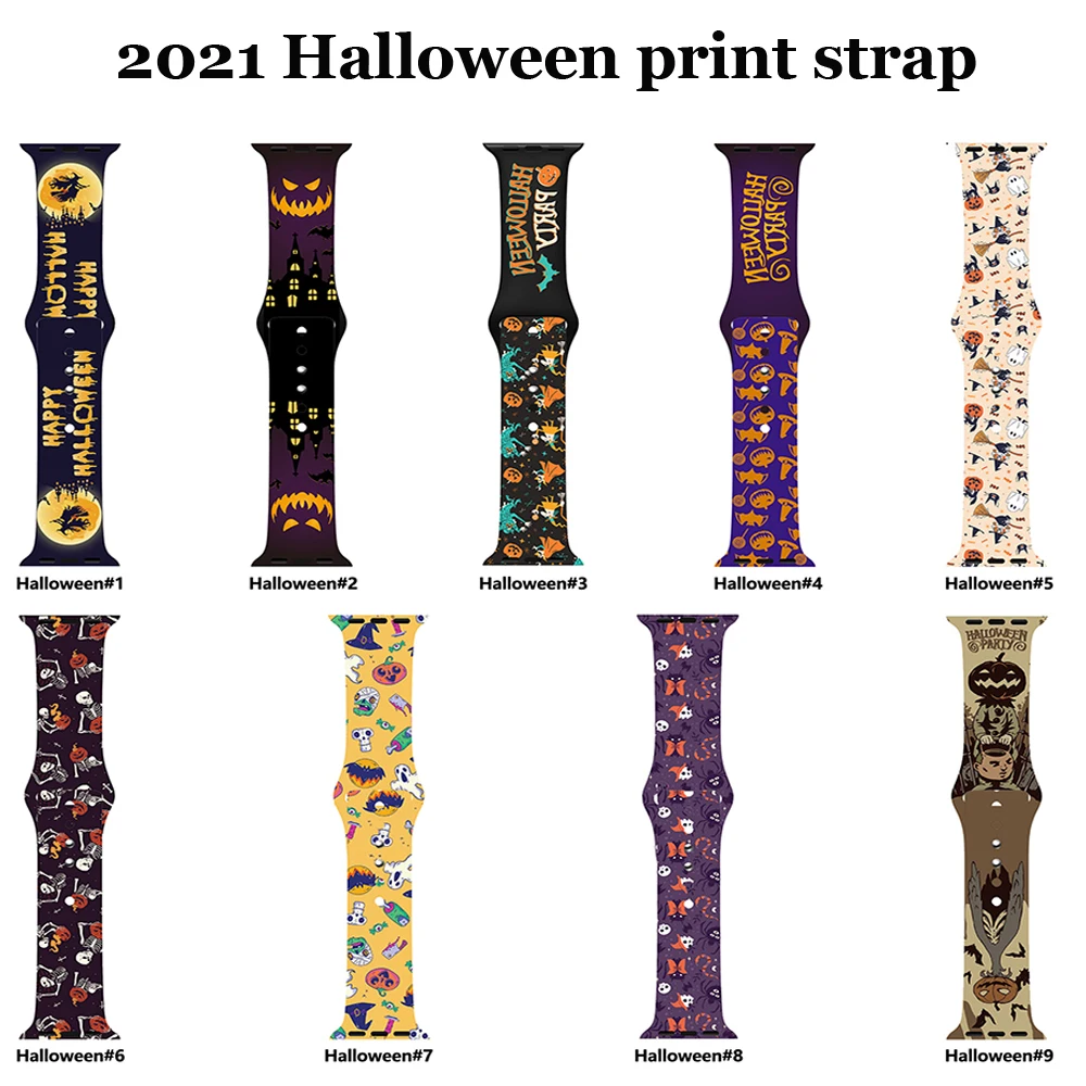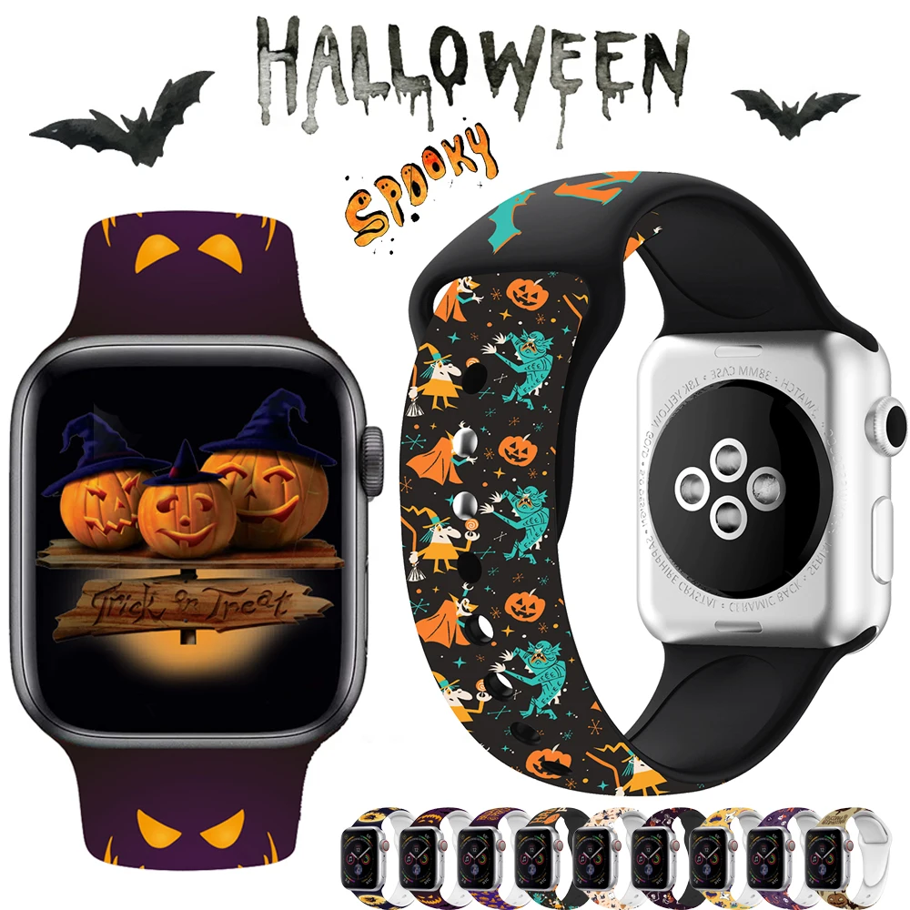 Halloween New Special Strap For Apple Watch Band 44mm 42mm Silicone Halloween Printed Band 38mm 40mm Iwatch series 6 SE 5 4 3 2