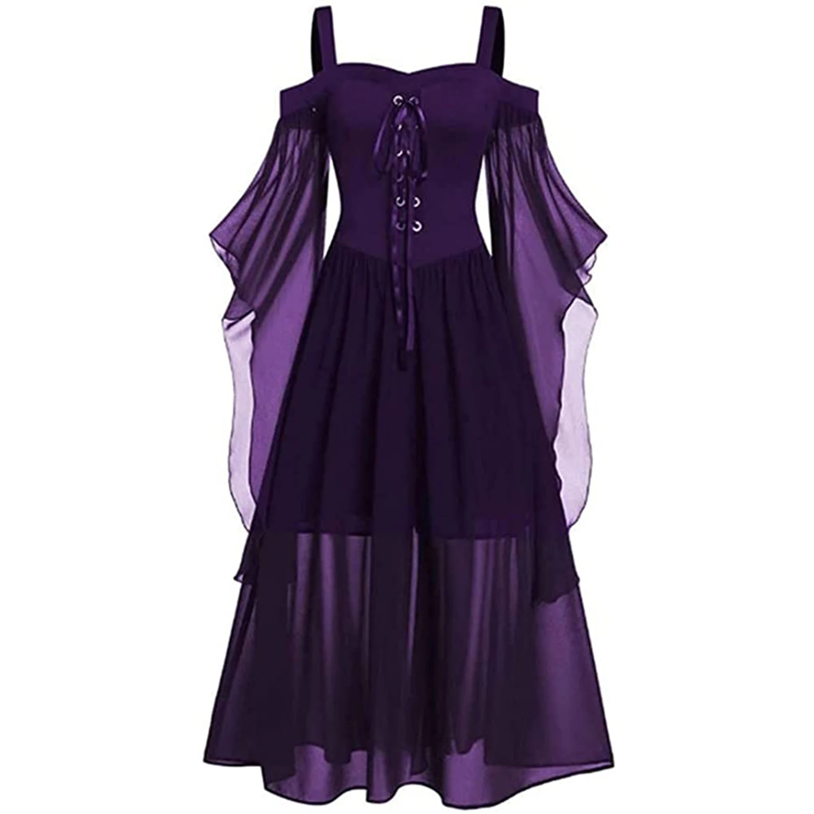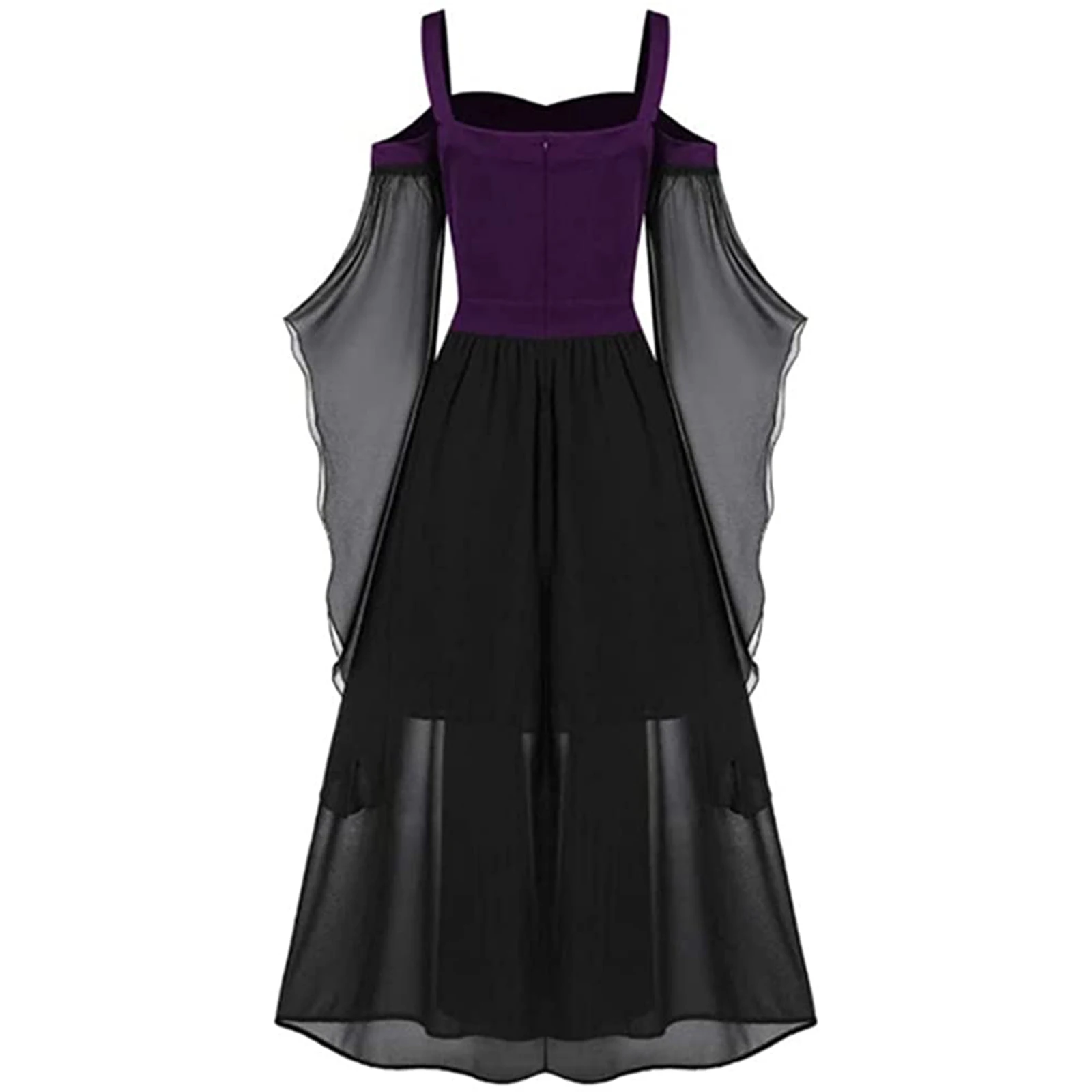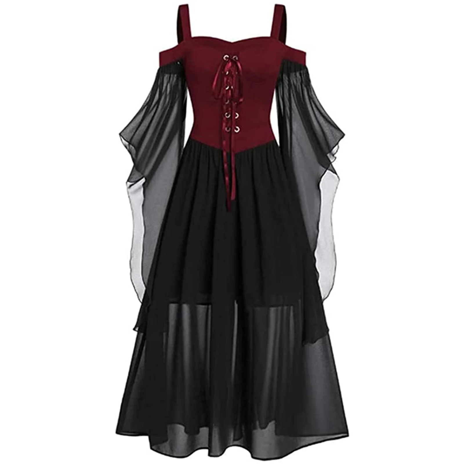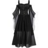 Halloween Witch Cosplay Costumes Gothic Off Shoulder Lace-up Vestidos Bandage Mesh Sheer A-line Long Party Dress for Women