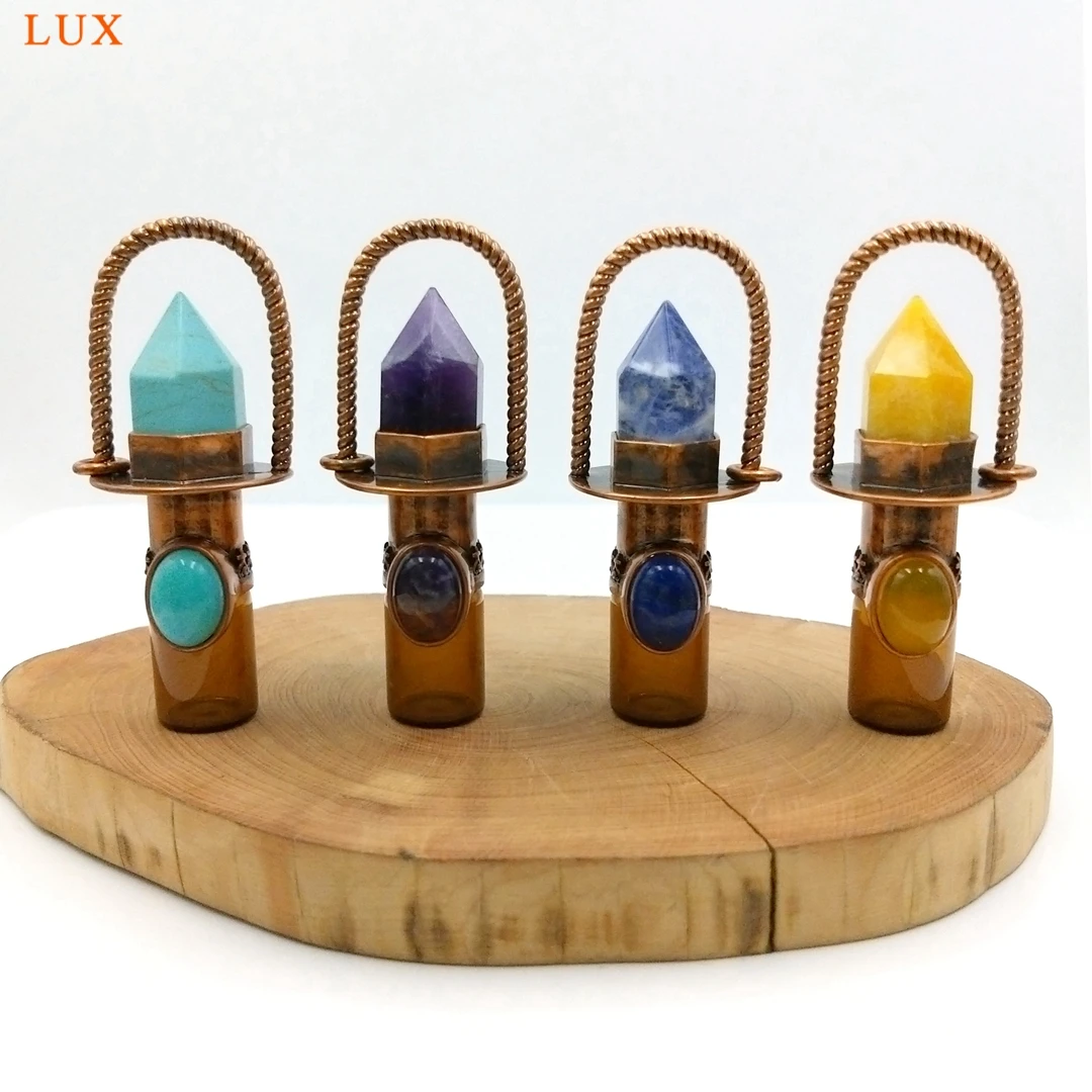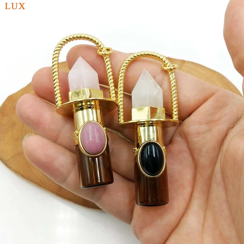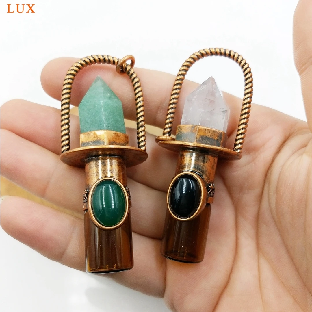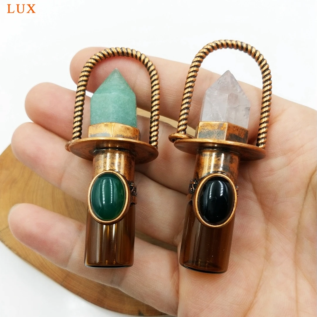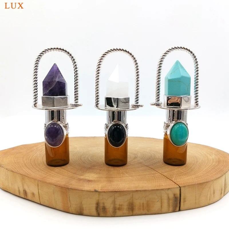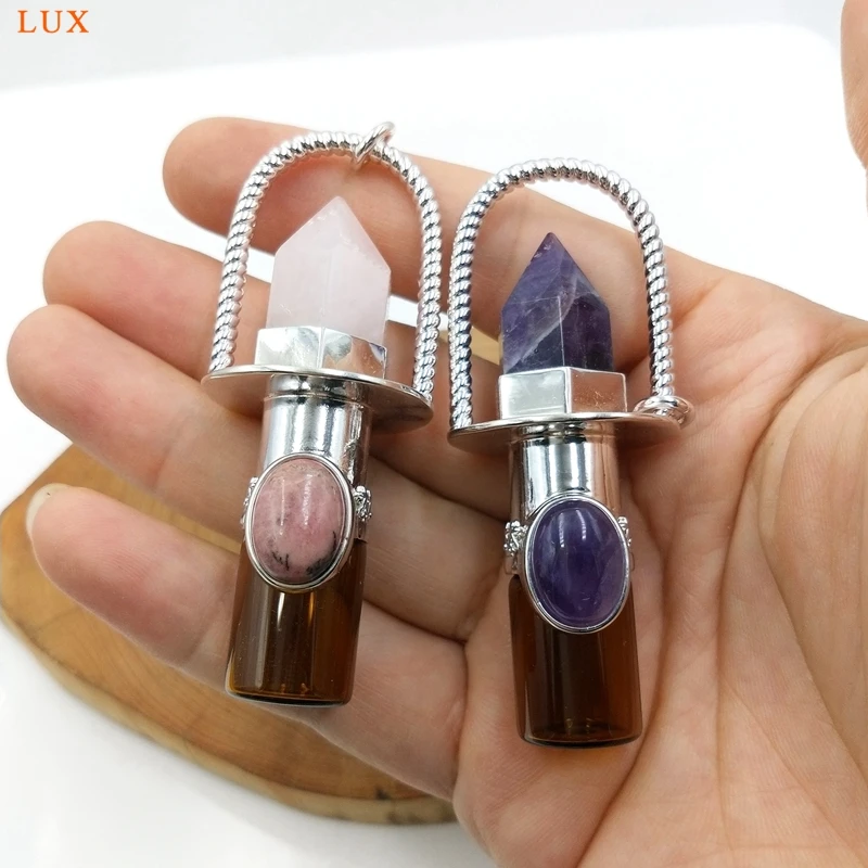 Health Crystal Quartz Rollerball pendant Point prism Essential Oil diffuser Gems stone perfume bottle Glass vial charm necklace