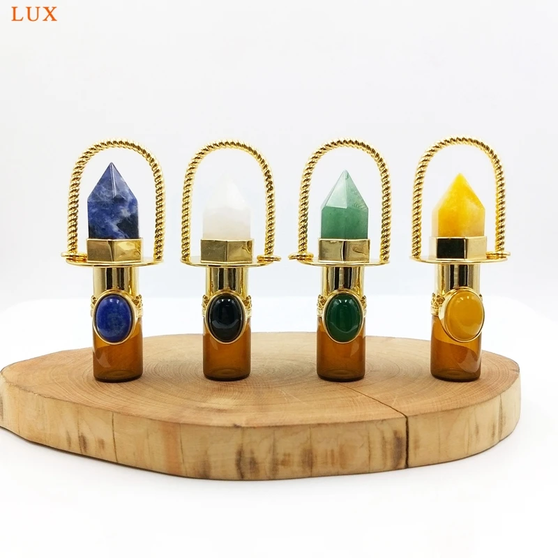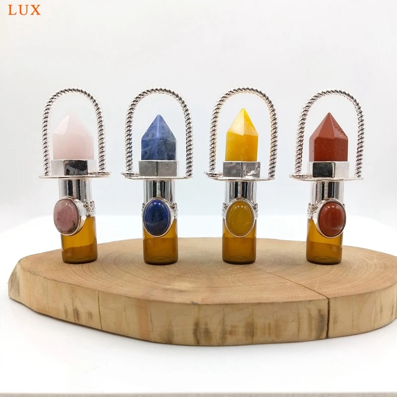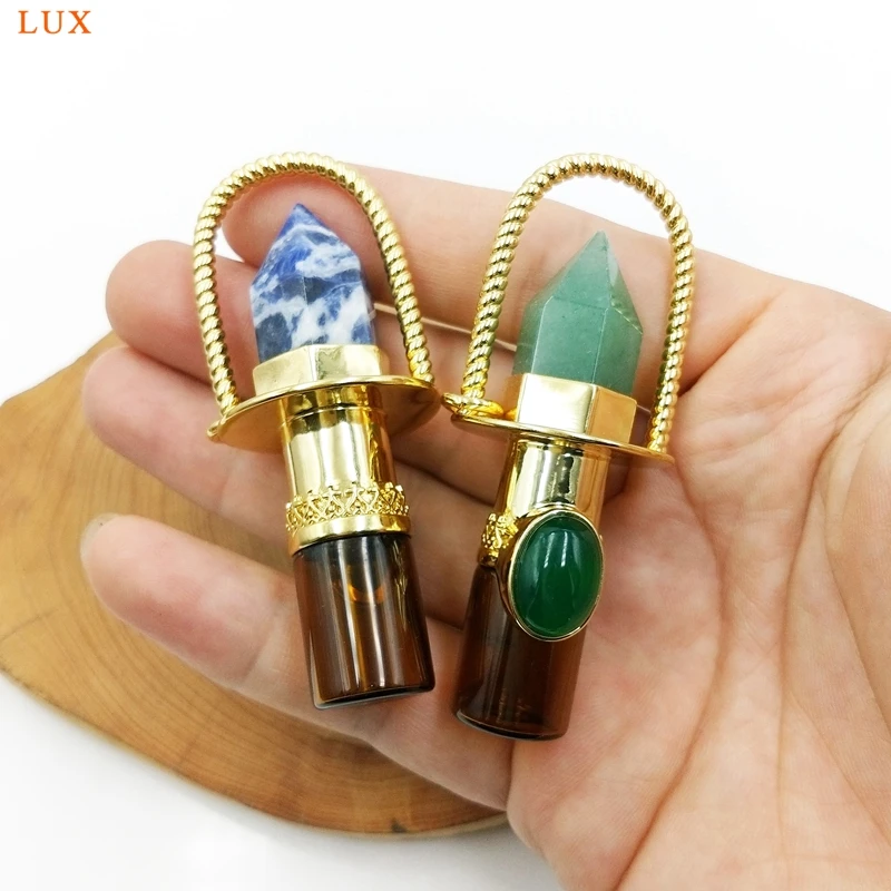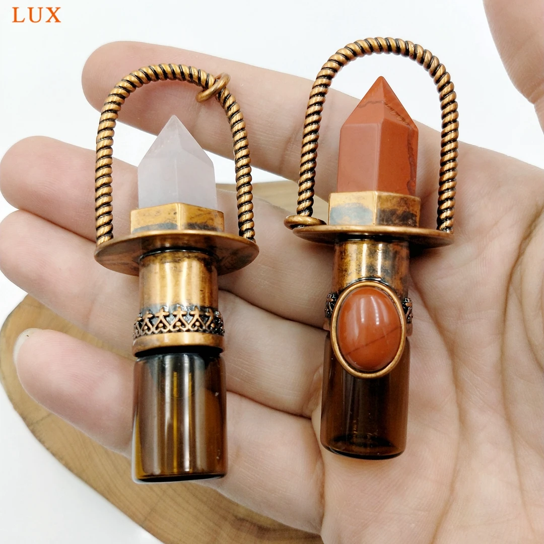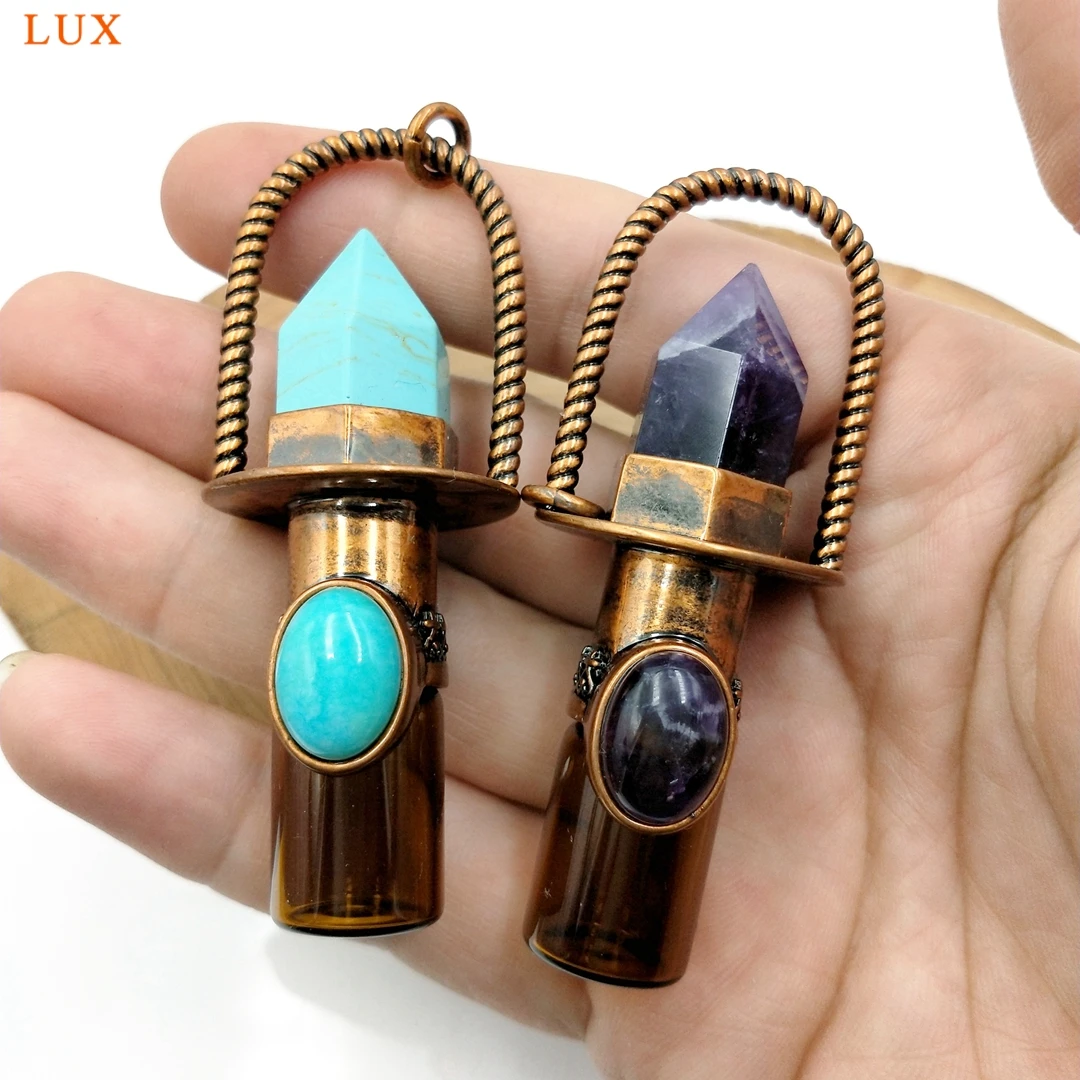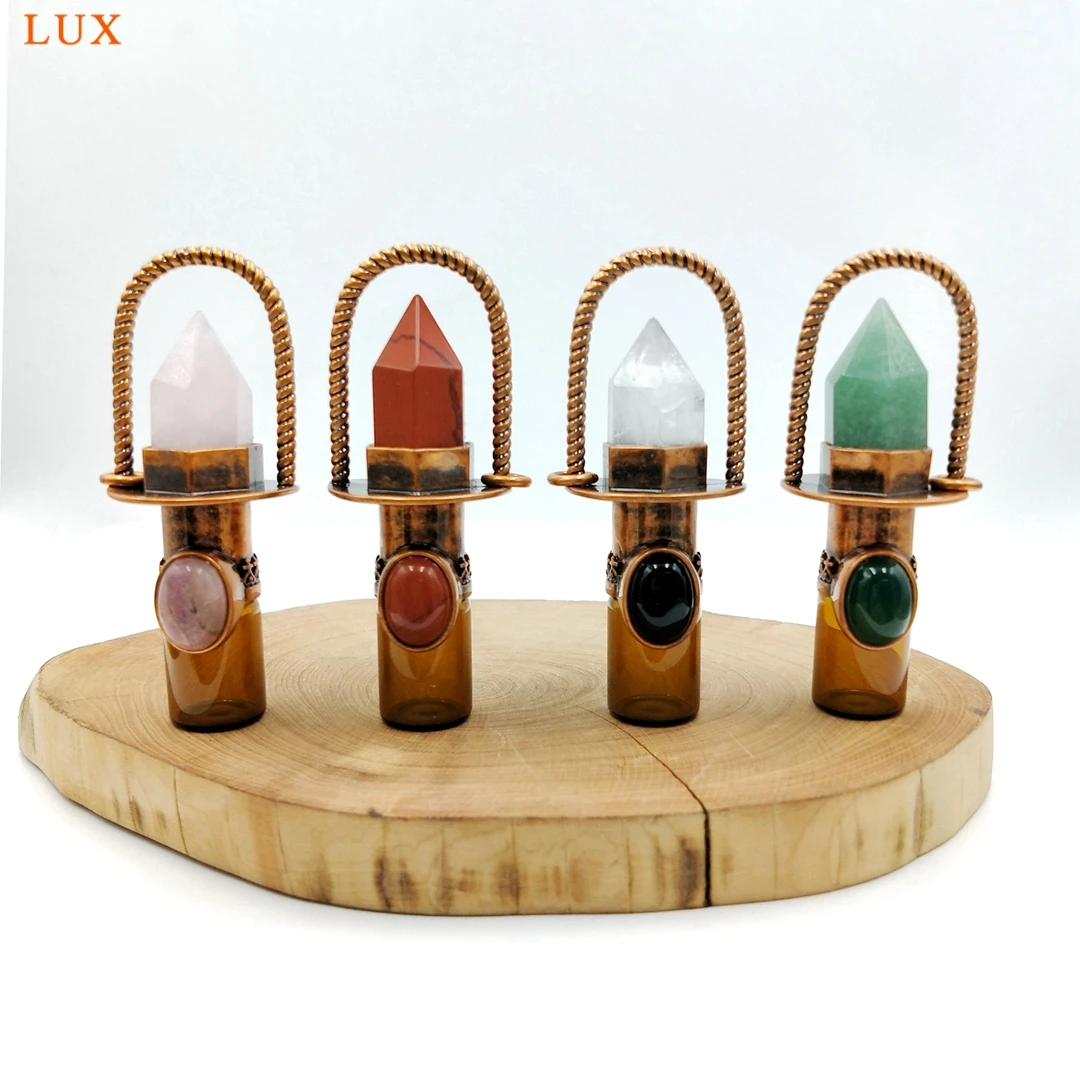 Health Crystal Quartz Rollerball pendant Point prism Essential Oil diffuser Gems stone perfume bottle Glass vial charm necklace