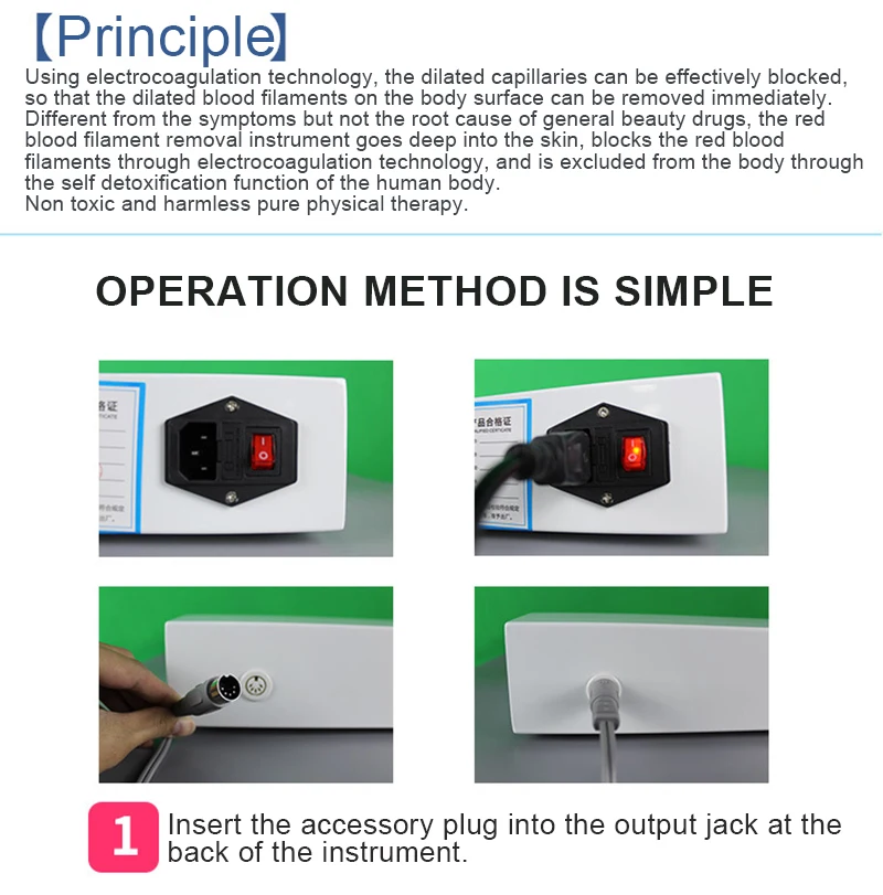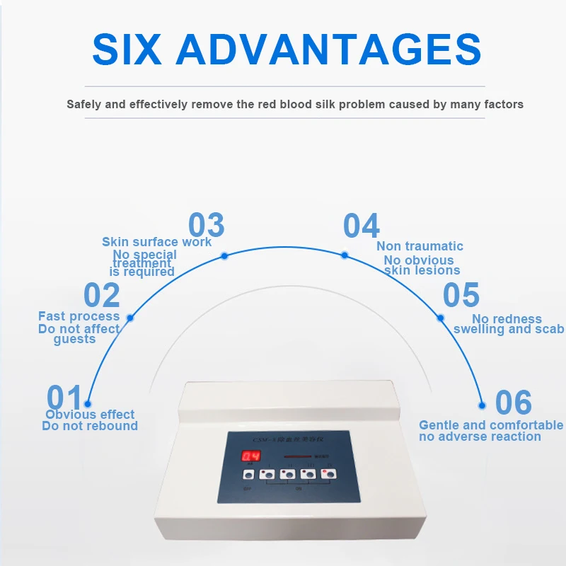 The machine uses advanced electrocoagulation technology to effectively block the expanded capillaries, thus instantly removing the expanded blood vessels.