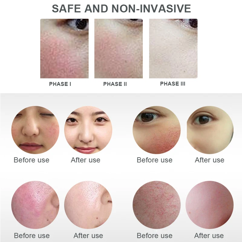The machine uses advanced electronic technology to effectively block the expanding capillaries, thus instantly removing the red color of the face.