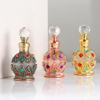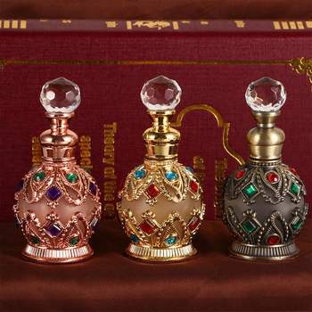 Garrafa de perfume de metal vintage, 1 peça, 15ml, estilo árabe, conta-gotas de óleos essenciais, recipiente para decoração do oriente médio, capinação, presente