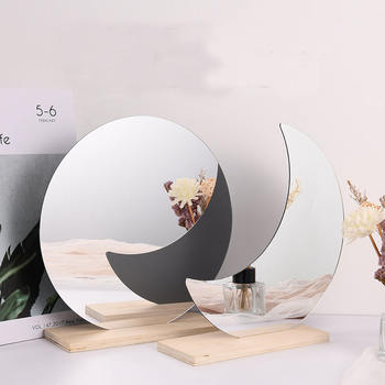 Irregular Acrylic Mirror Desk Standing Cosmetic Beauty Makeup Mirror with Wooden Base Decorative Aesthetic Room Decor Photo Prop