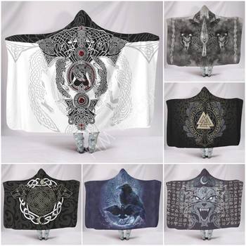 Vikings Tattoo Odins Ravens Muninn Crow Wearable Throw Blanket