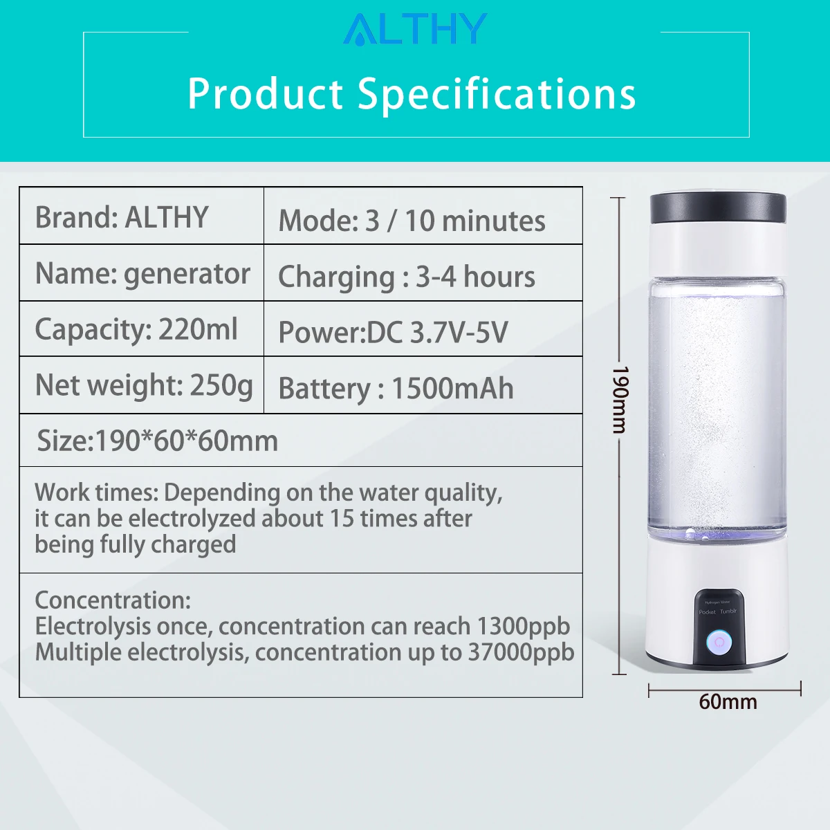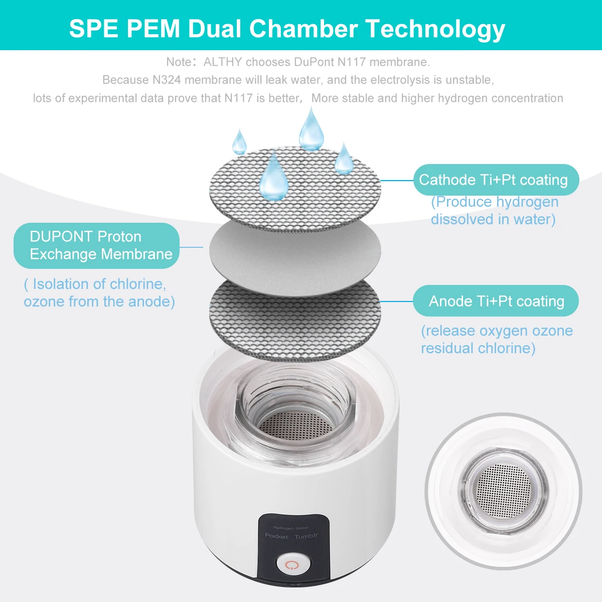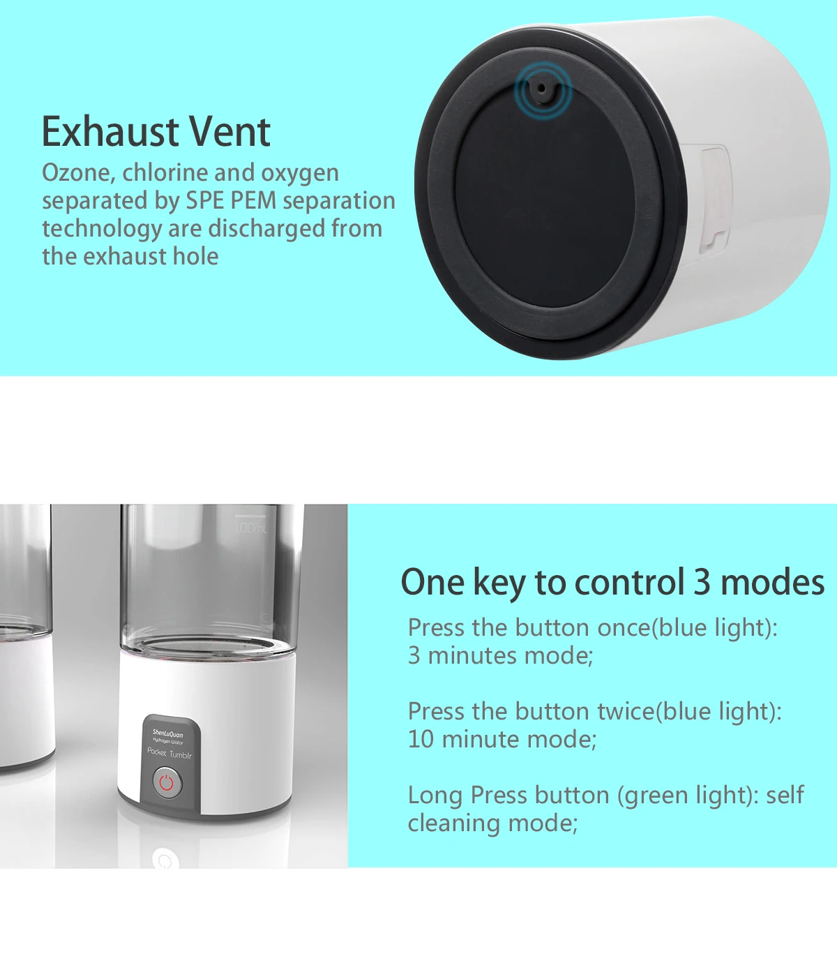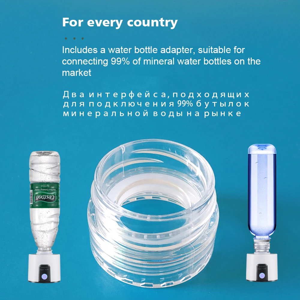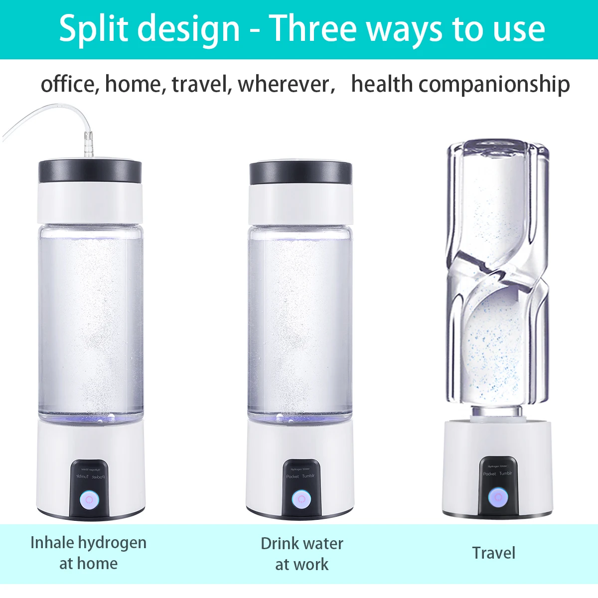 ● 3 ways use design, Can be directly connected to a mineral water bottle, Can also absorb hydrogen at home, portable for travel, work and office.