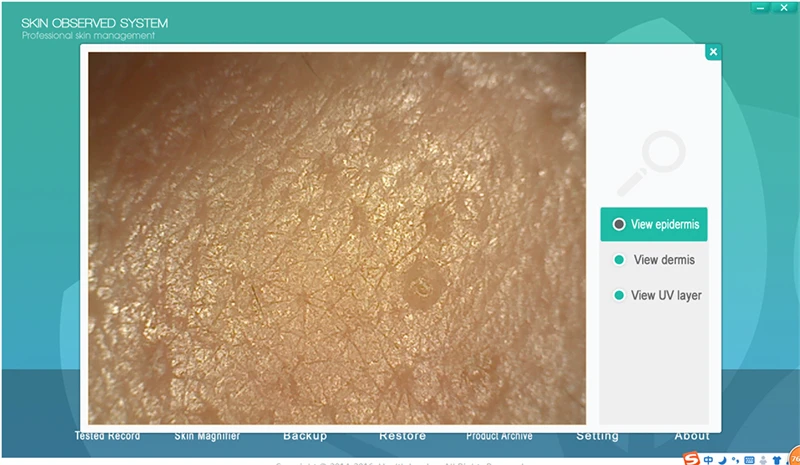 * 5.0 million pixel camera with thre goup of lights scan skin epidermis, skin dermis and UV layer.