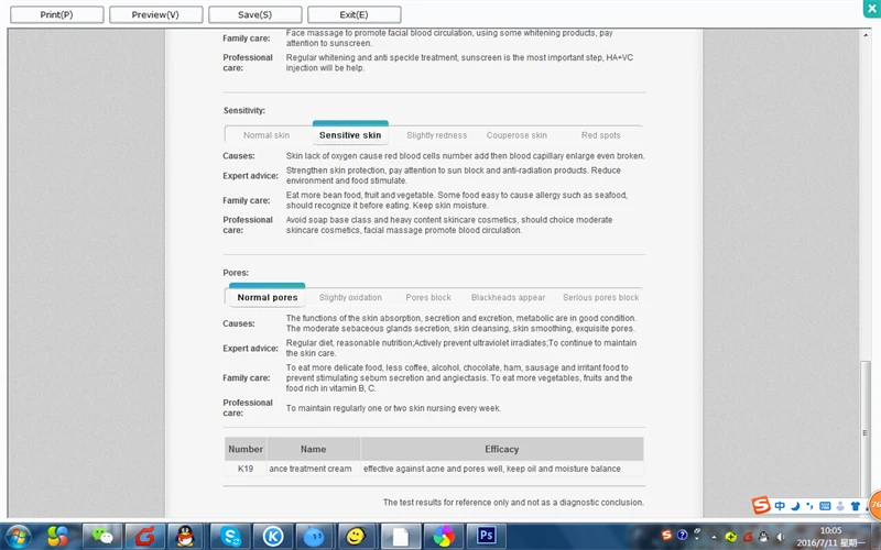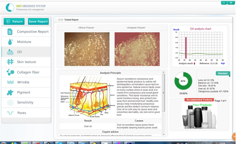 Skin analyzer offer 8 report including: