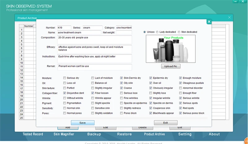 * Skin oil, skin moisture, skin texture, wrinkle, collagen fiber, pigment, senstivity and pores
