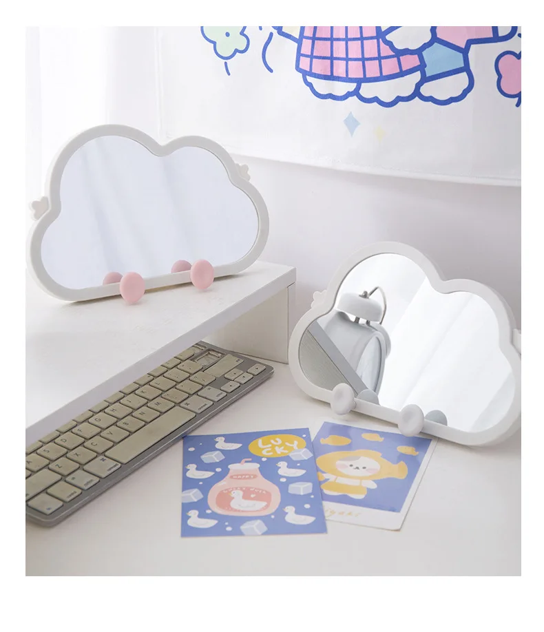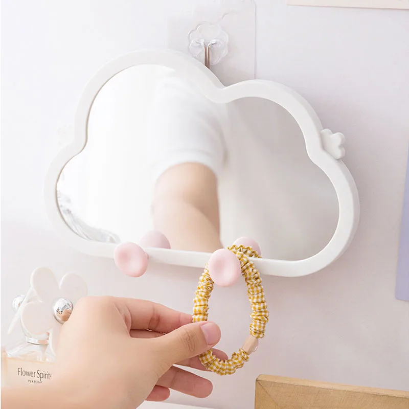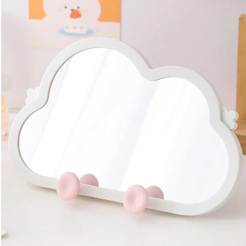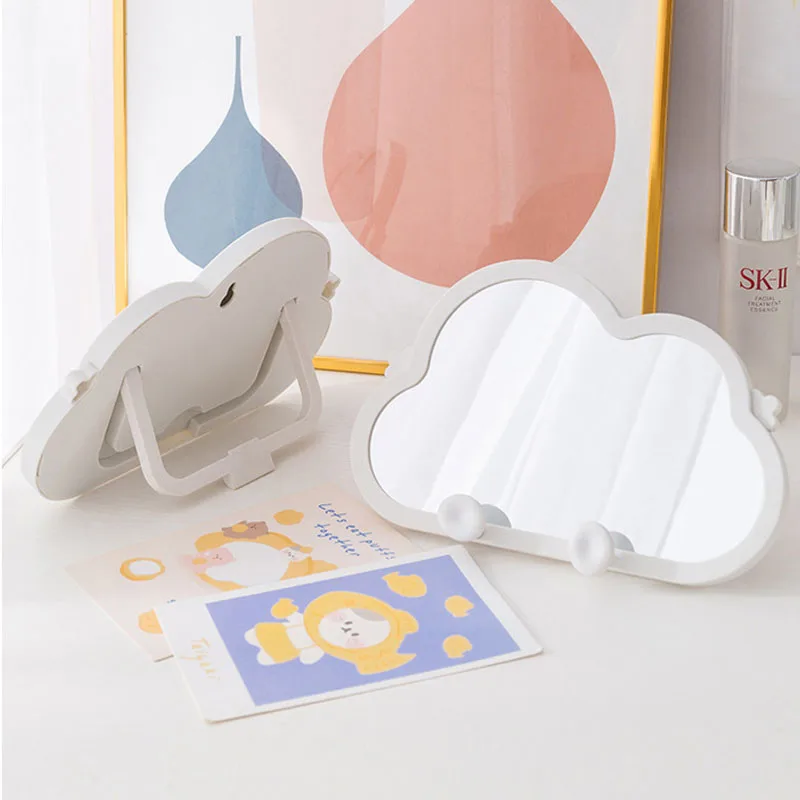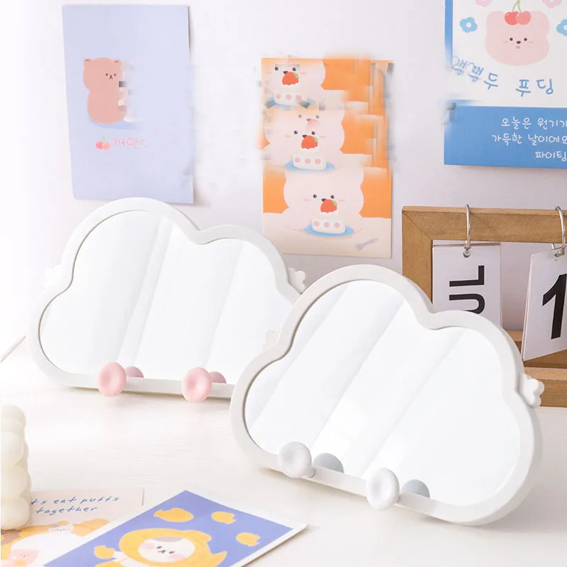 Kawaii Cloud Desk Mirror for Girls Cosmetic Wall Mirror with Hook Cartoon Cute Student Dormitory Table Countertop Makeup Mirror