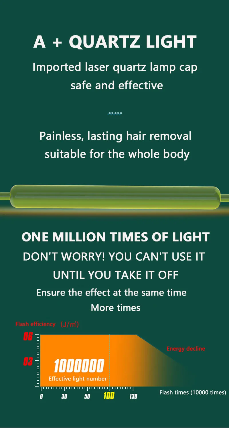 7. Quartz laser head, Durable, high-performance chip, fast light output