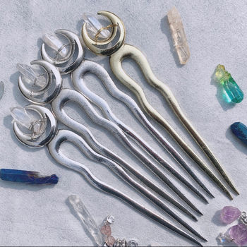 Wicca Vintage Hair Stick Crescent Moon Dragon Viking Renaissance Hairpin Hair Accessories Witch Hairpin Amulet Hair Jewelry