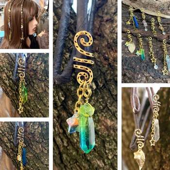 Gold Hair Beads Skull Raw Crystal Hair ring Pentagram Viking Spiral Sneak Beaded Hair Braids Hair Accessories Wicca Accessories