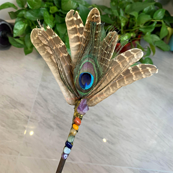 Wicca scepter magic wand magic stick peacock feather crystal seven chakra Witch accessories altar decoration ritual props