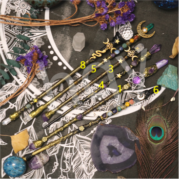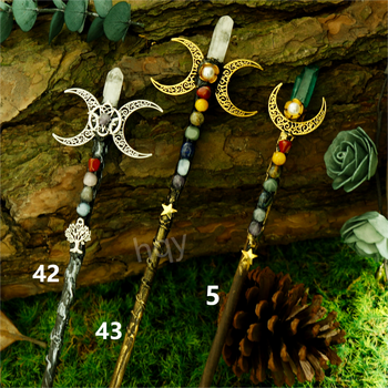 Crystal Wicca scepter magic moon wand magic stick seven chakras natural crystal Witch accessories altar decoration ritual props