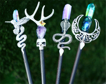 Handmade Crafts Vintage Witch wand magic wand Crystal Hairpin Witch Branch White Quartz Hair Stick wiccan Bridal Wedding Gift