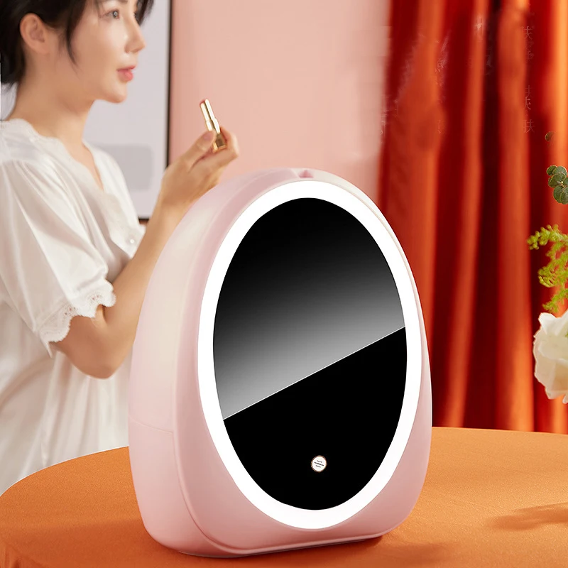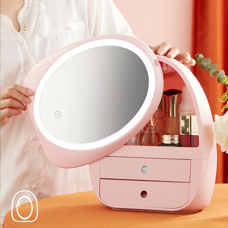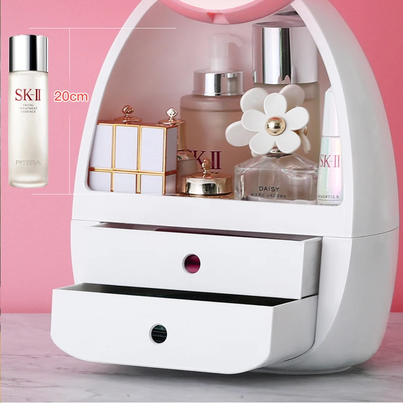 Makeup Organizer Box with Big LED Mirror Dust-proof Make Up Storage Box Brush Lipstick Holder Beauty Drawer Cosmetic Organizer