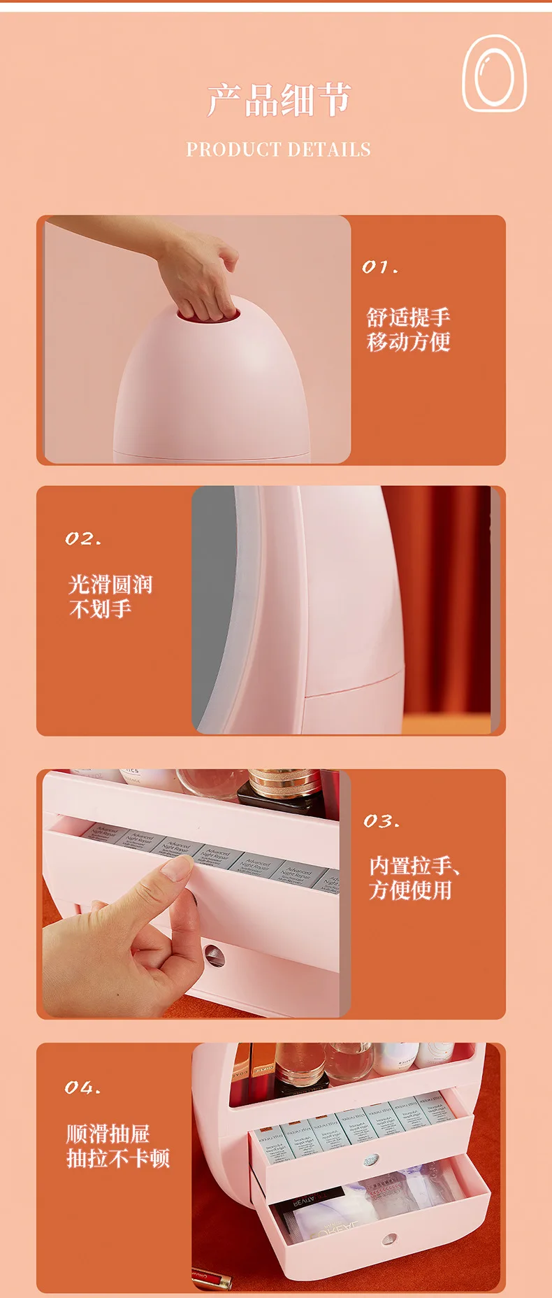 Cosmetic storage box with light and mirror skin care products lipstick mask portable dustproof drawer type storage box