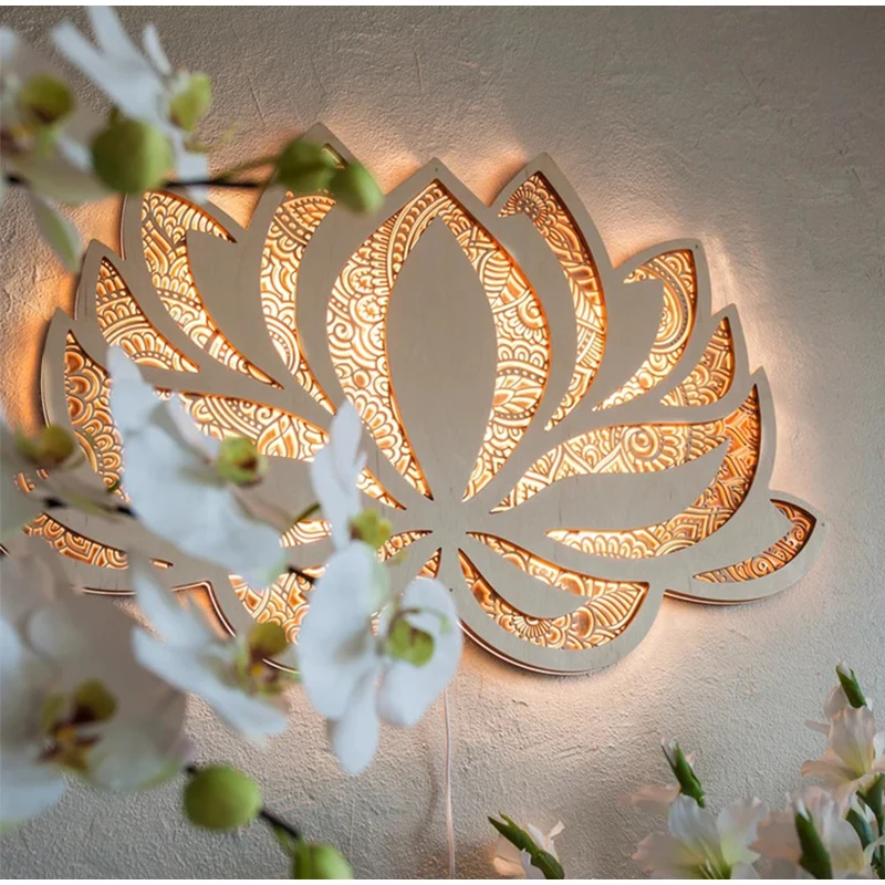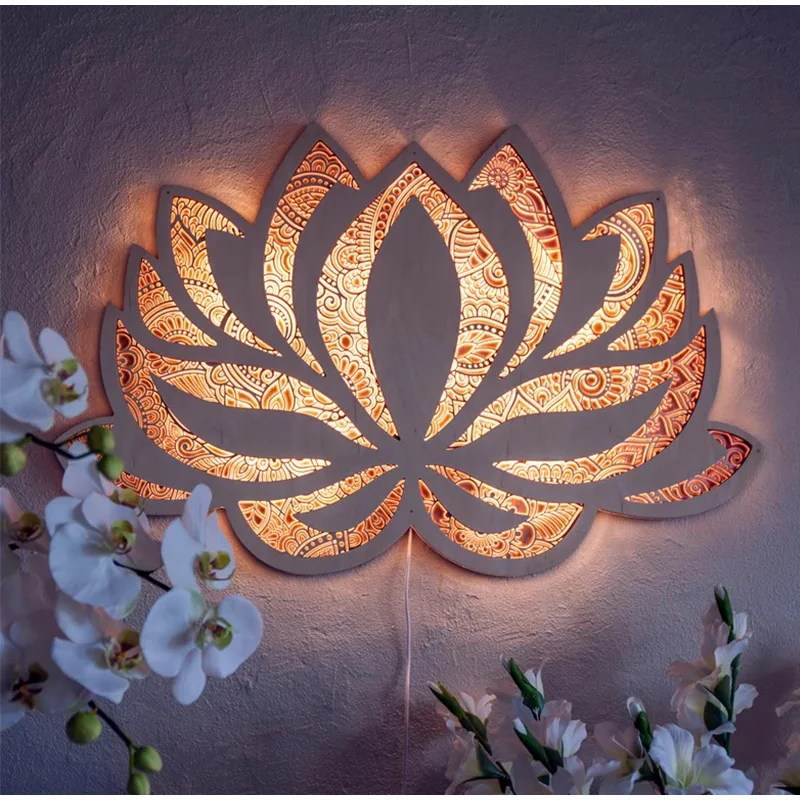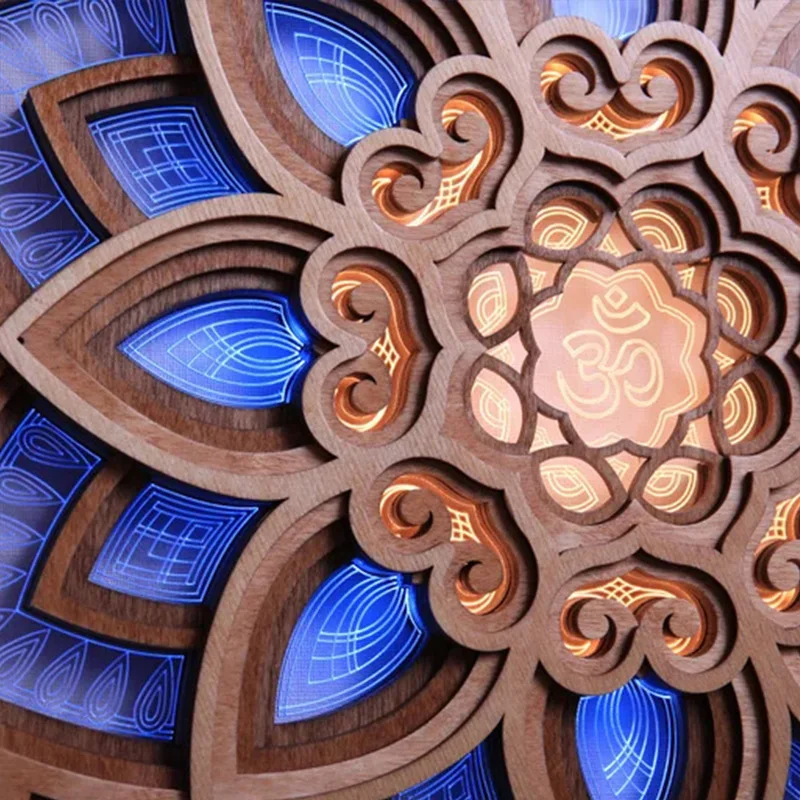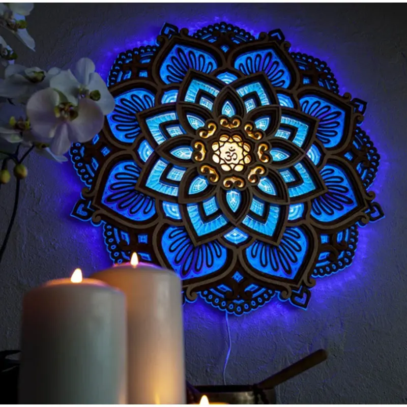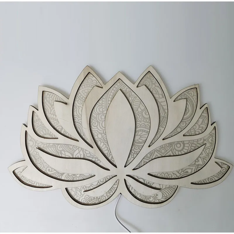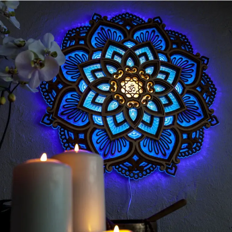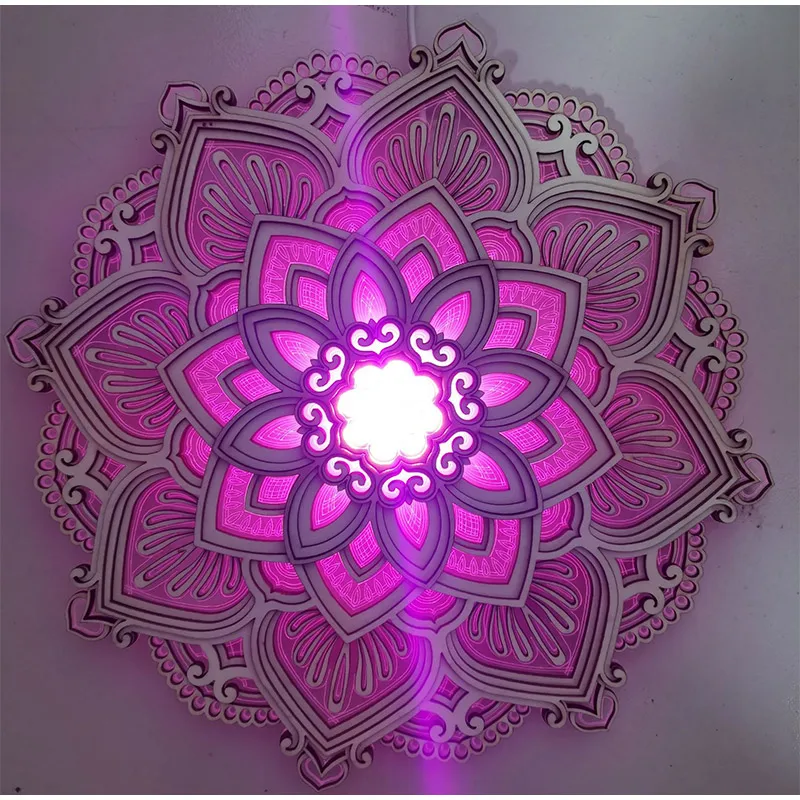 Mandala Lotus Wall Hanging Wooden Carving Led Night Light Creative Design Art Craft Yoga Meditation Room Decoration Home Decor