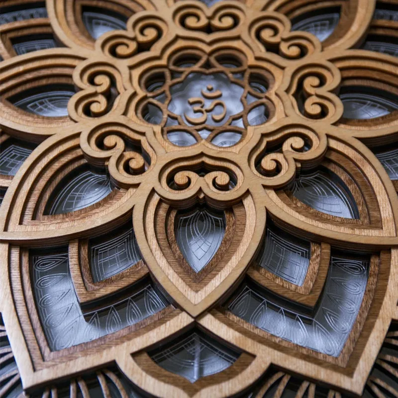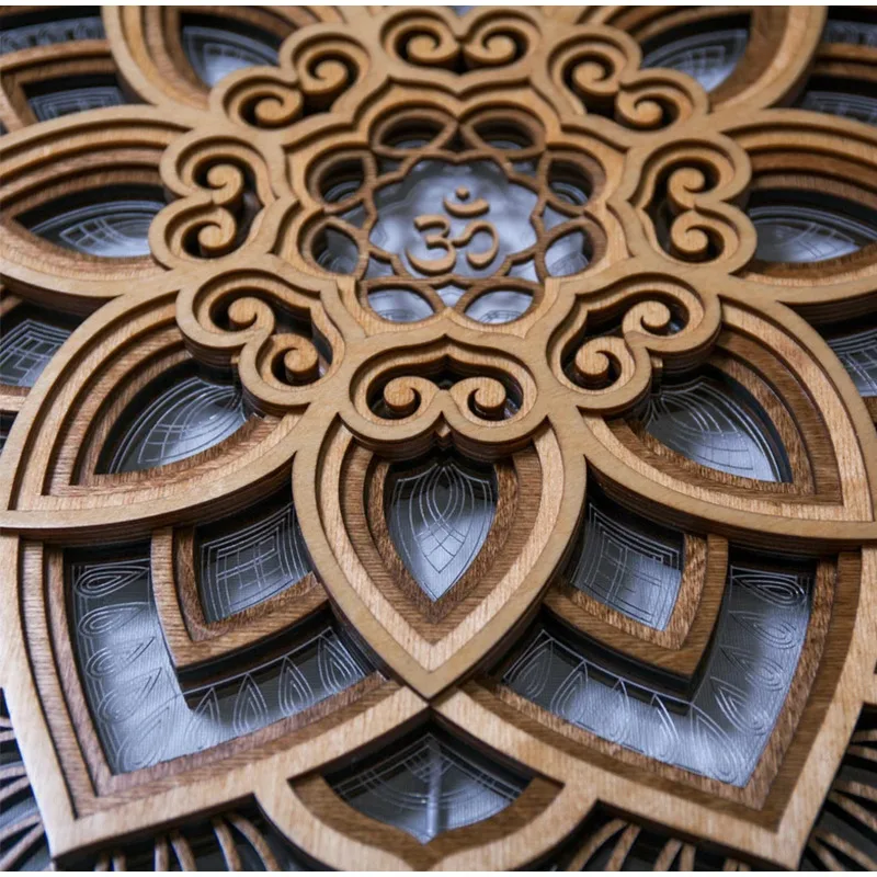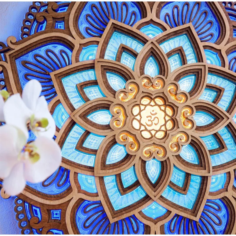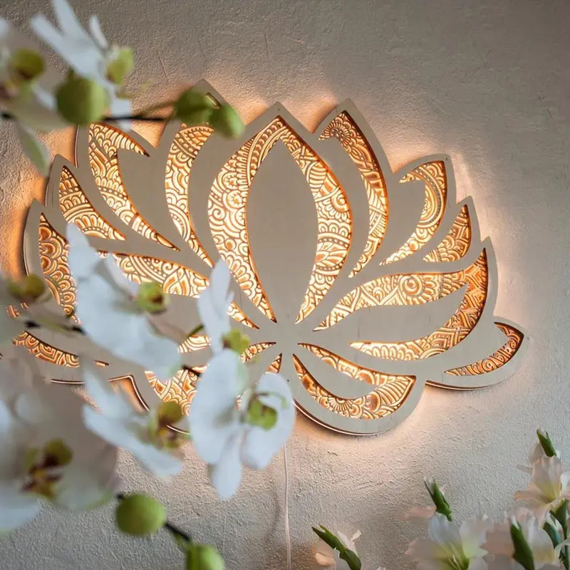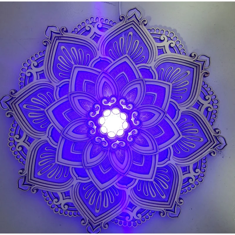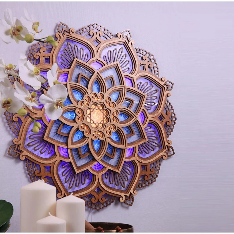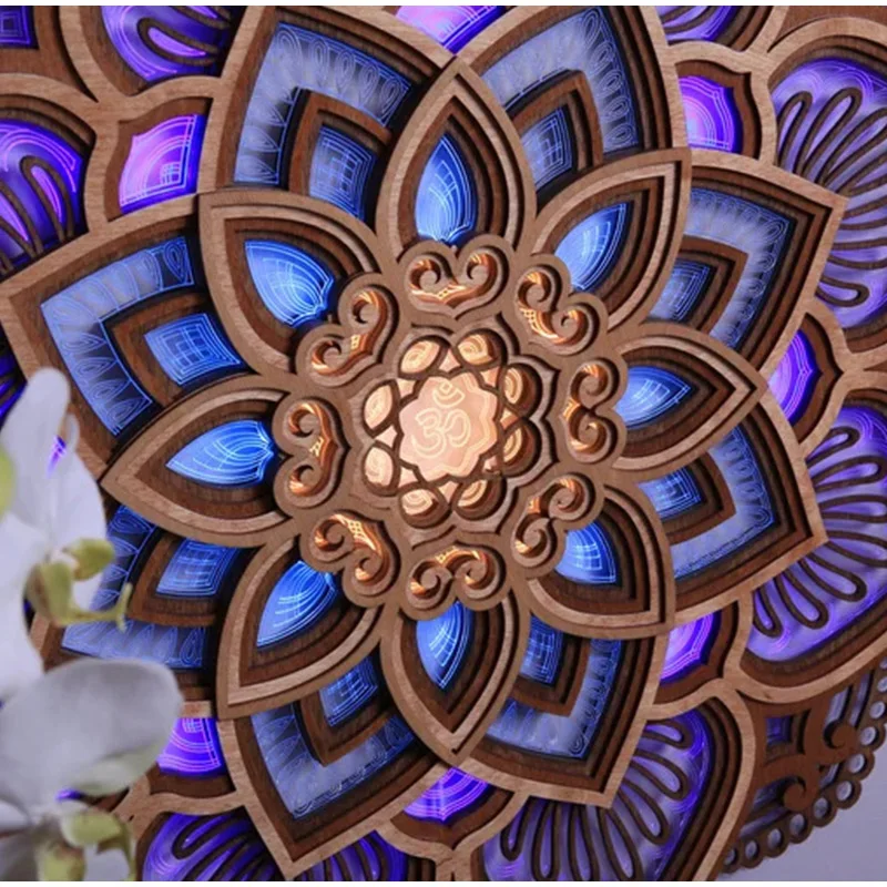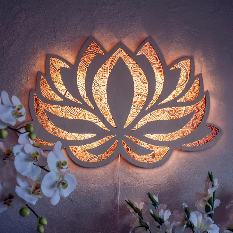 Mandala Lotus Wall Hanging Wooden Carving Led Night Light Creative Design Art Craft Yoga Meditation Room Decoration Home Decor