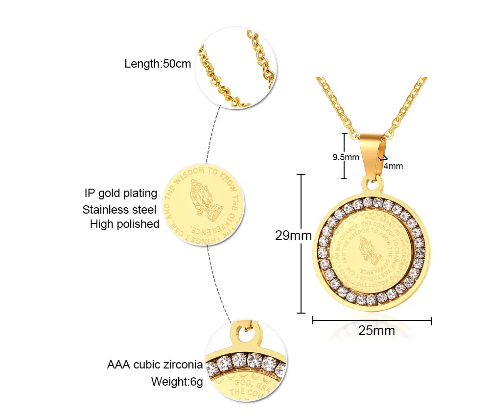 IDEAL DESIGN: Engraved lord’s prayer on front,and serenity prayer with praying hands on back side. Can work as two styles,but one style’s cost.All the PRAYER WORDS are correct.