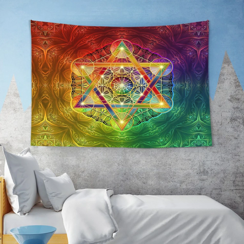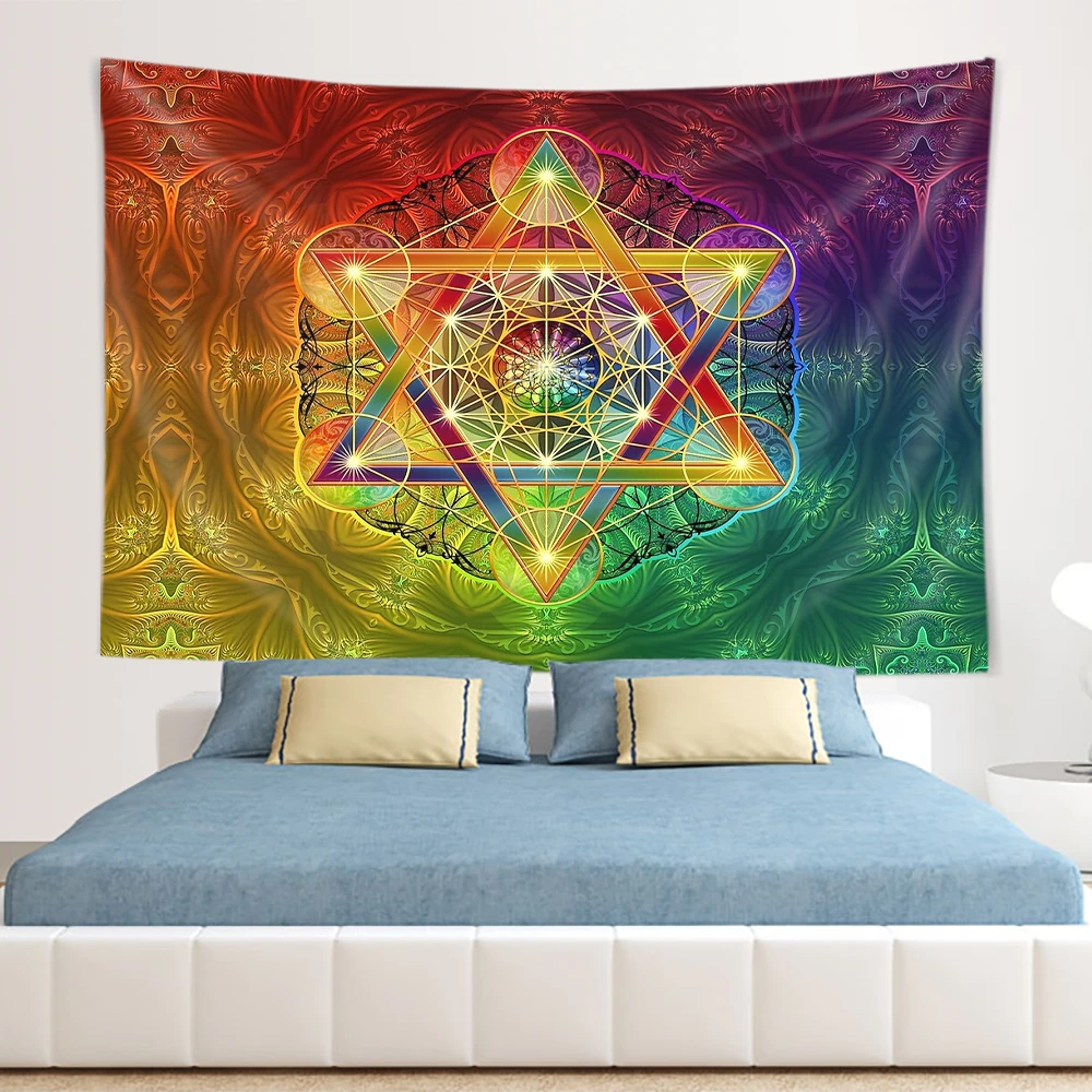 Merkabah And Flower Of Life With Metatron S Cube Home Psychedelic Colorful Hanging Tapestries Dorm Wall Art Yoga Mat Tapiz