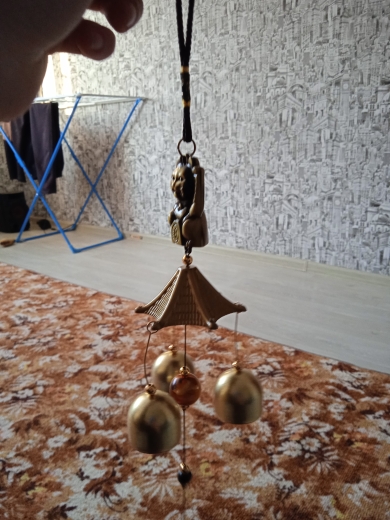Давно хотел себе такой маятник заказать и наконец он у меня. На самом верху символ кошка в натуре а внизу висит треугольник на веревке и если его касаешься головой то колокольчик звенит. Офигенная вещица рекомендую. Дошёл в пункт выдачи ситилинк в жирновске за 20 дней. Теперь кто будет заходить в квартиру точно услышишь что кто то зашёл ко мне. Прифигачил его дюбелем в стену у двери и круто вообще. Мне он обошёлся вообще в смешную цену за 109 рублей со скидкой 150 руб