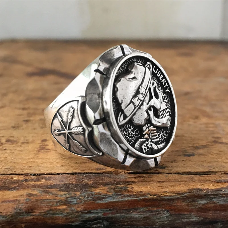 Mexican Hobo Nickel Skull Biker Ring Men's Indian St…