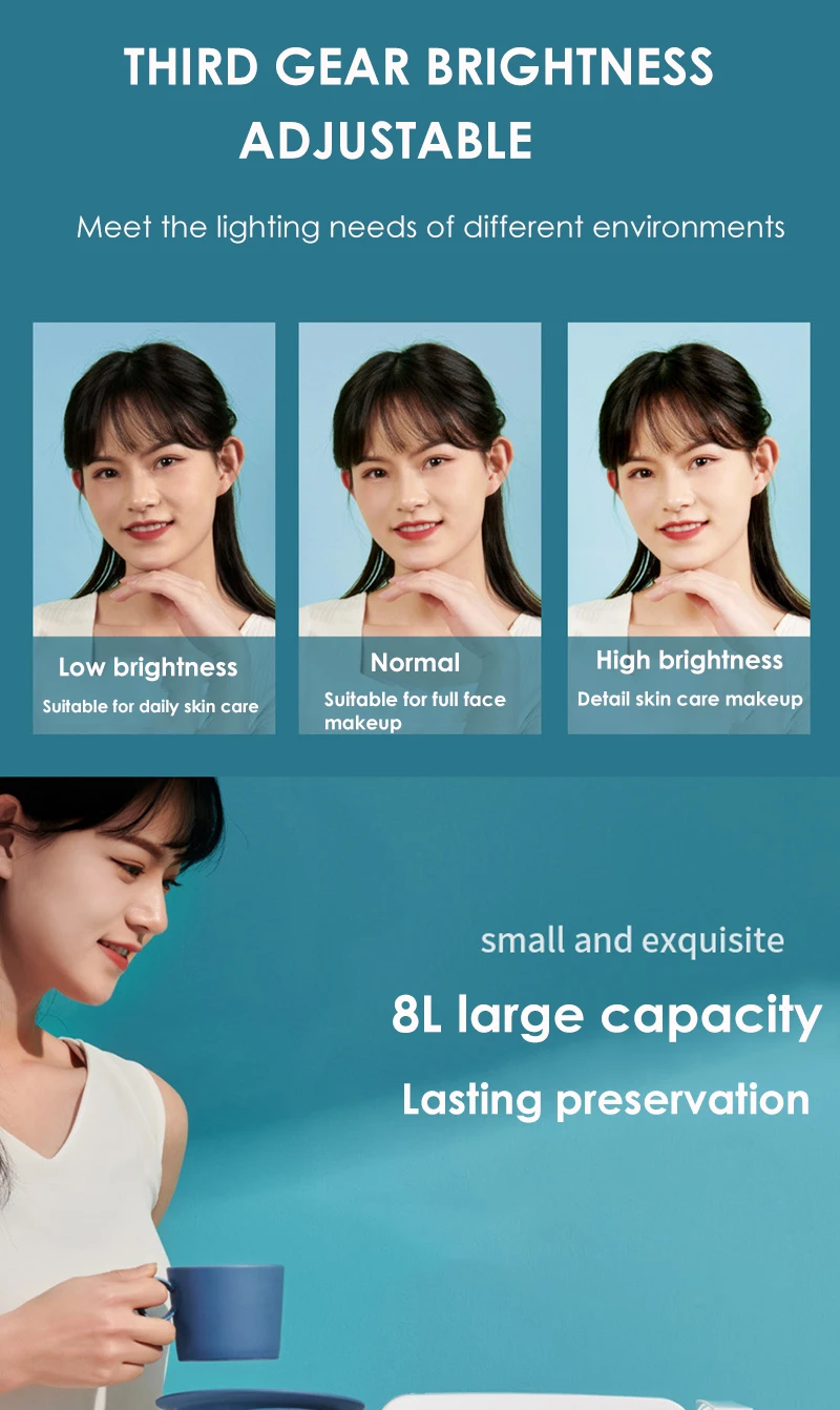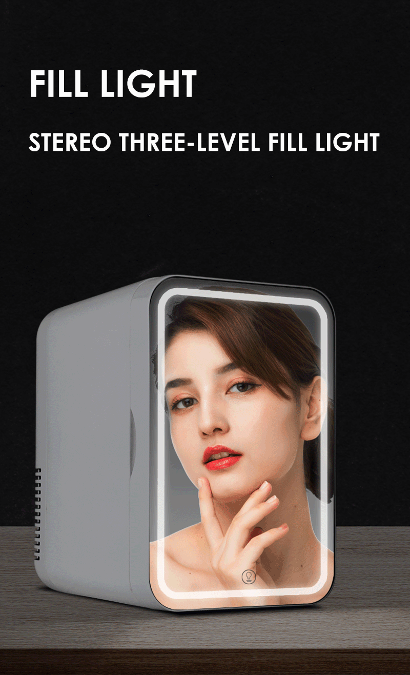 Mini Makeup Fridge Portable Cosmetic Refrigerator Compact Glass Panel Led Light Mirror Cooler Warmer Freezer Home Car Use 8L