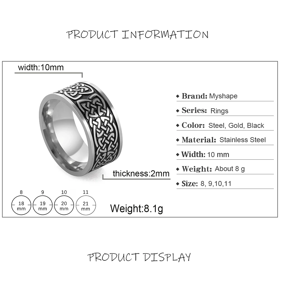 Product Name: My Shape Viking Celtics Knot Rings for Men Women Stainless Steel Ring Vintage Nordic Male Jewelry bague femme anillo celta 10mm