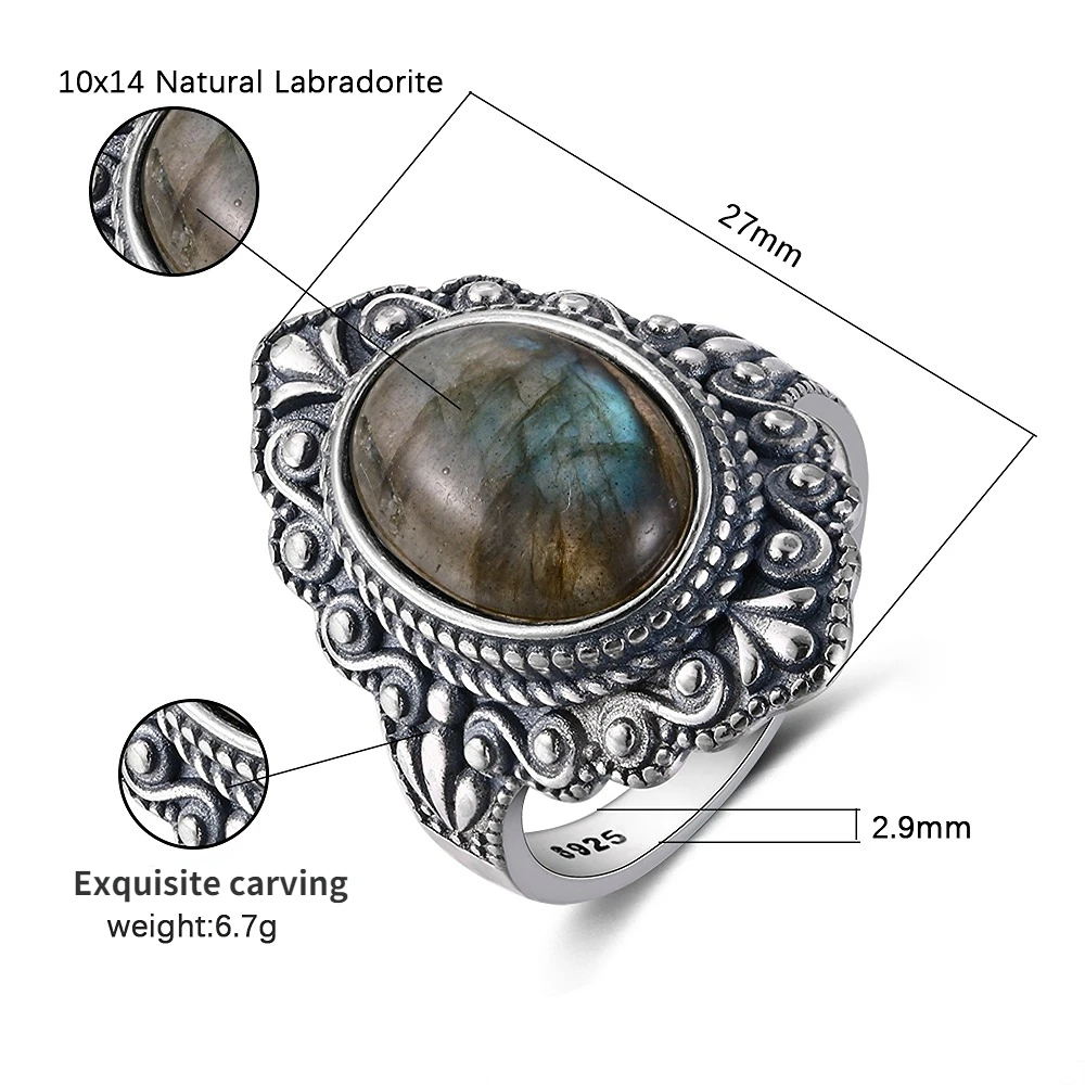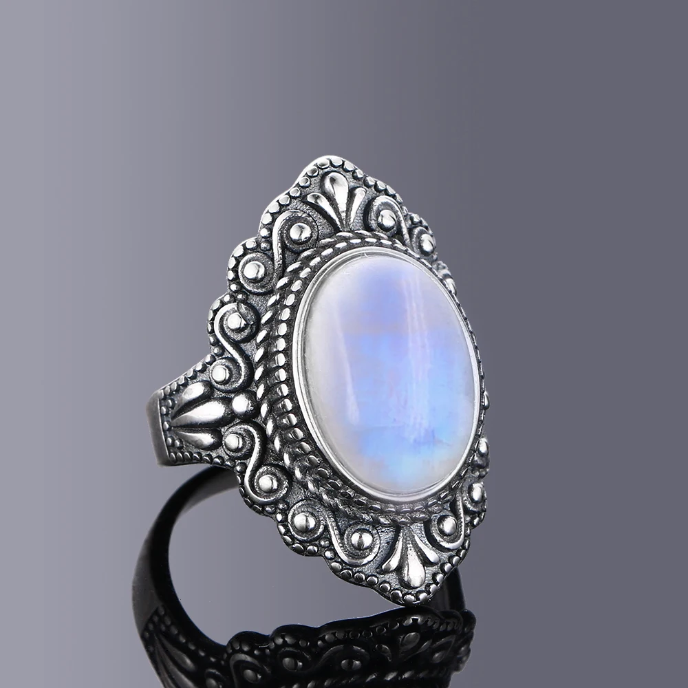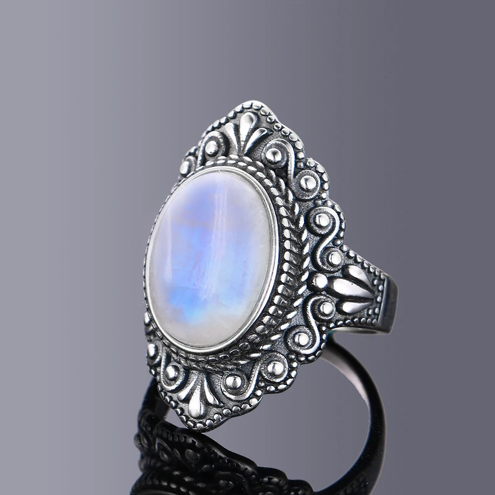 Nasiya Vintage Oval Natural Moonstone Rings For Women Silver Ring Jewelry Finger Ring Gemstone Rings Party Gift
