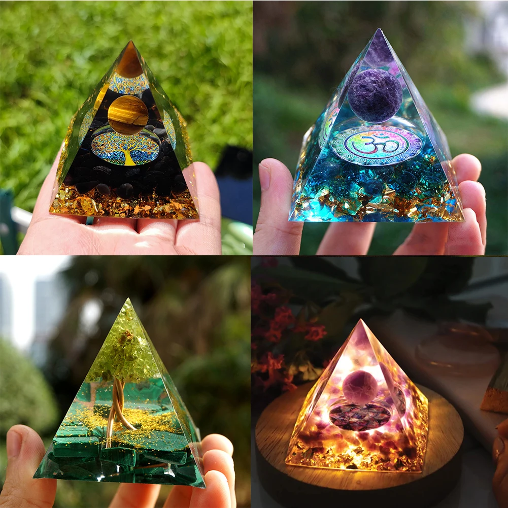 Natural Healing Crystals Orgonite Energy Pyramid Sculpture Symbolize Lucky Gather Wealth Prosperity Resin Ornaments Gift Home Office Decor 5cm