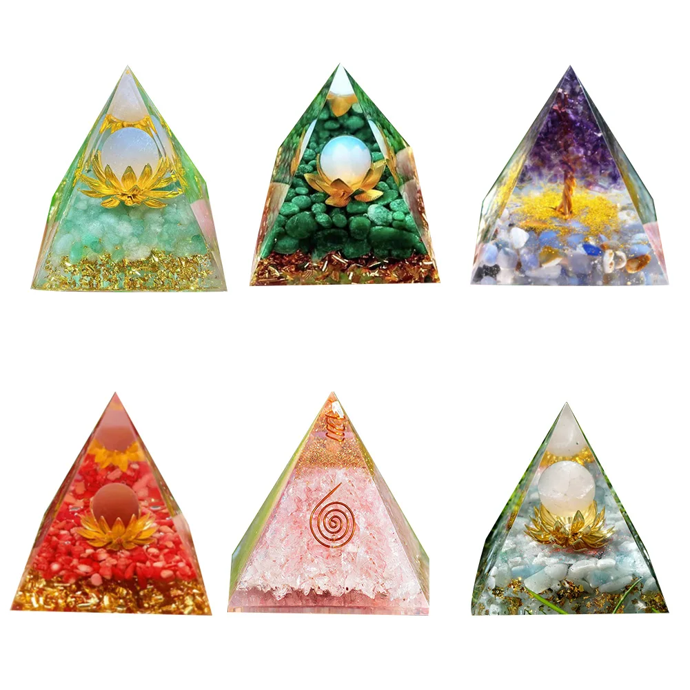 Natural Stone Orgonite Gem Pyramid Crystals Orgone Energy Generator Healing Reiki Chakra Meditation Ornaments Crafts Home Office Art Decoration Gift