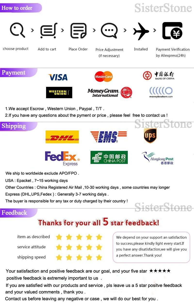 3. If customers want to deliver faster please choose the express faster option and kindly pay the express fee if the value of the order is less than 150 Dollar in total Some distant countries can cost you much more. We will inform you by international call or email before sending.