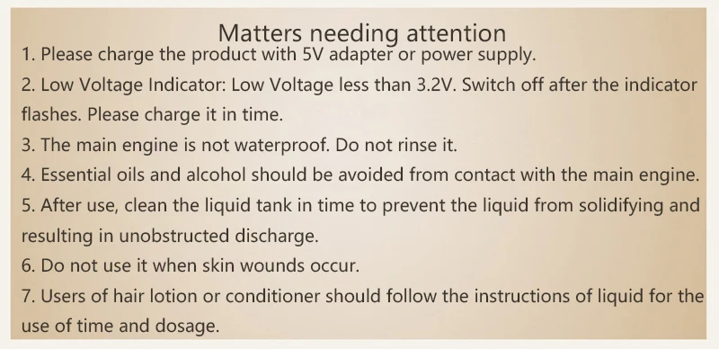 7. Users of hair lotion or conditioner should follow the instructions of liquid for the use of time and dosage.