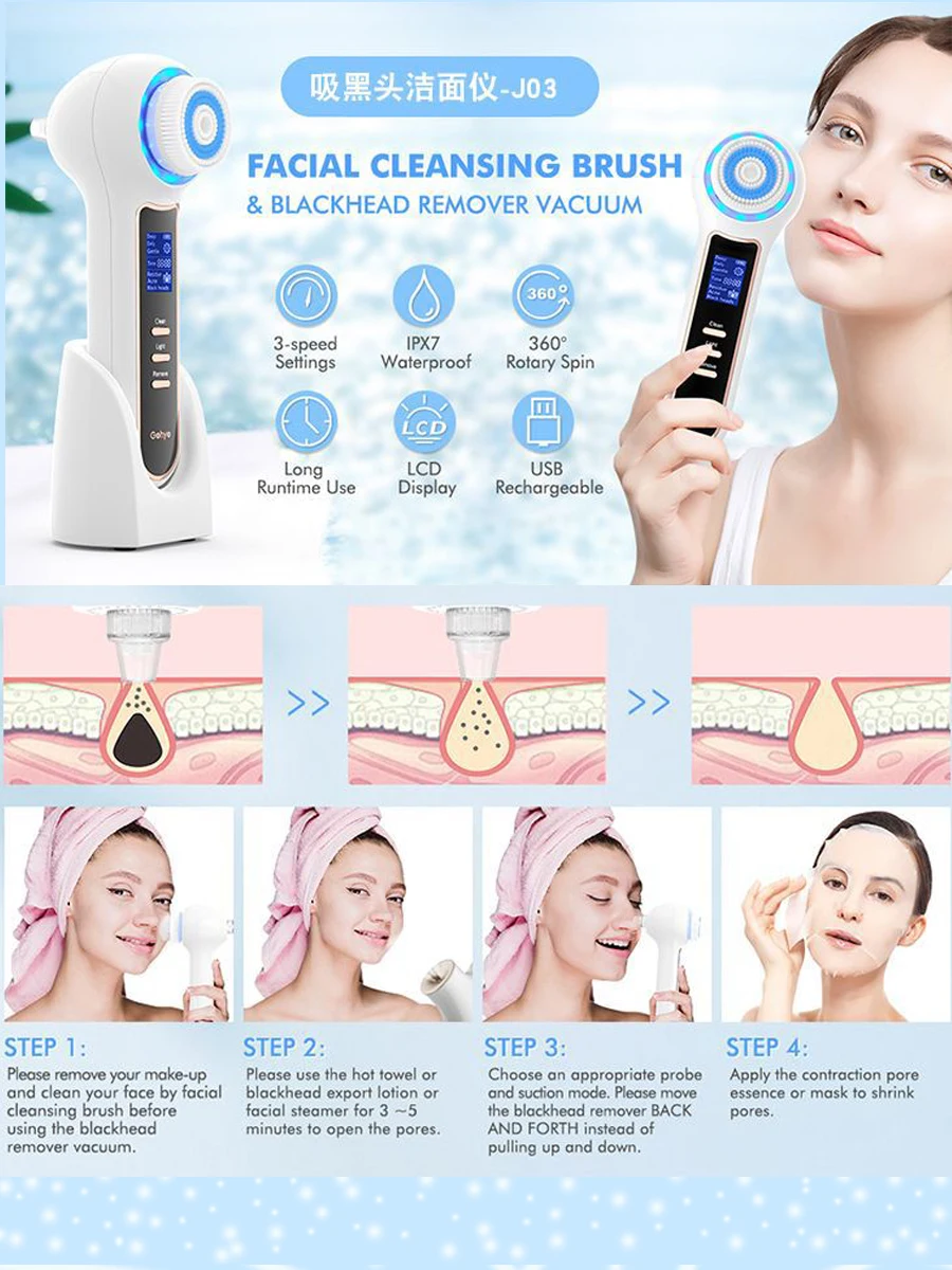 Blackhead: Strong suction, suitable to clean blackheads.